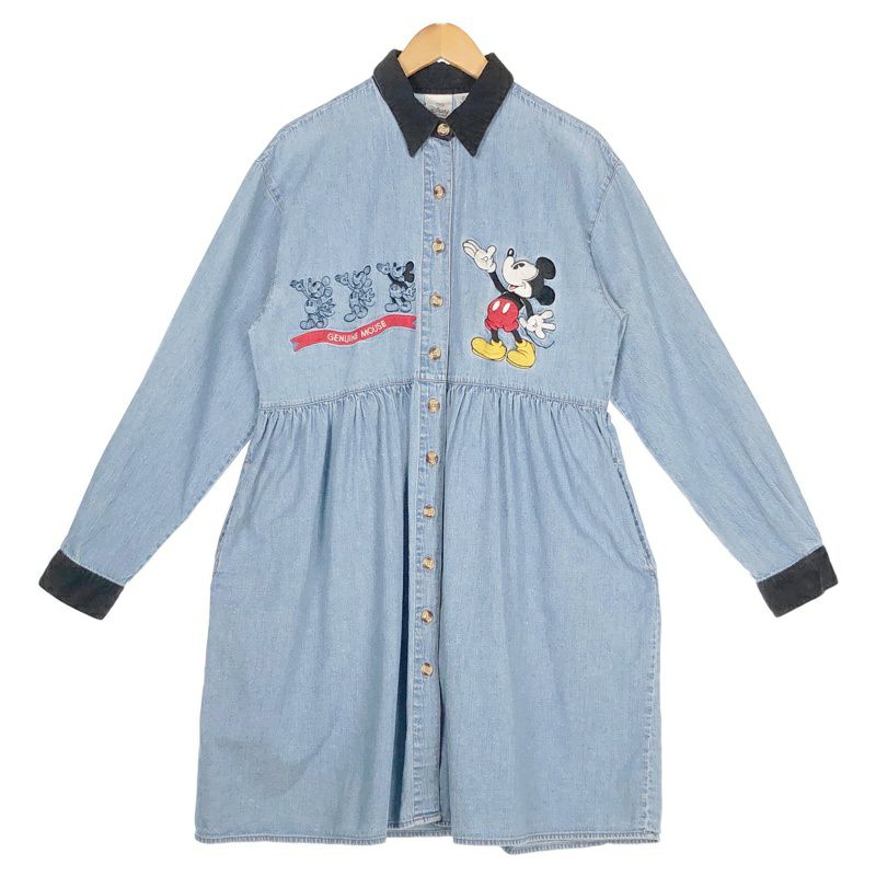 古着 Disney ミッキー刺繍 デニムワンピース