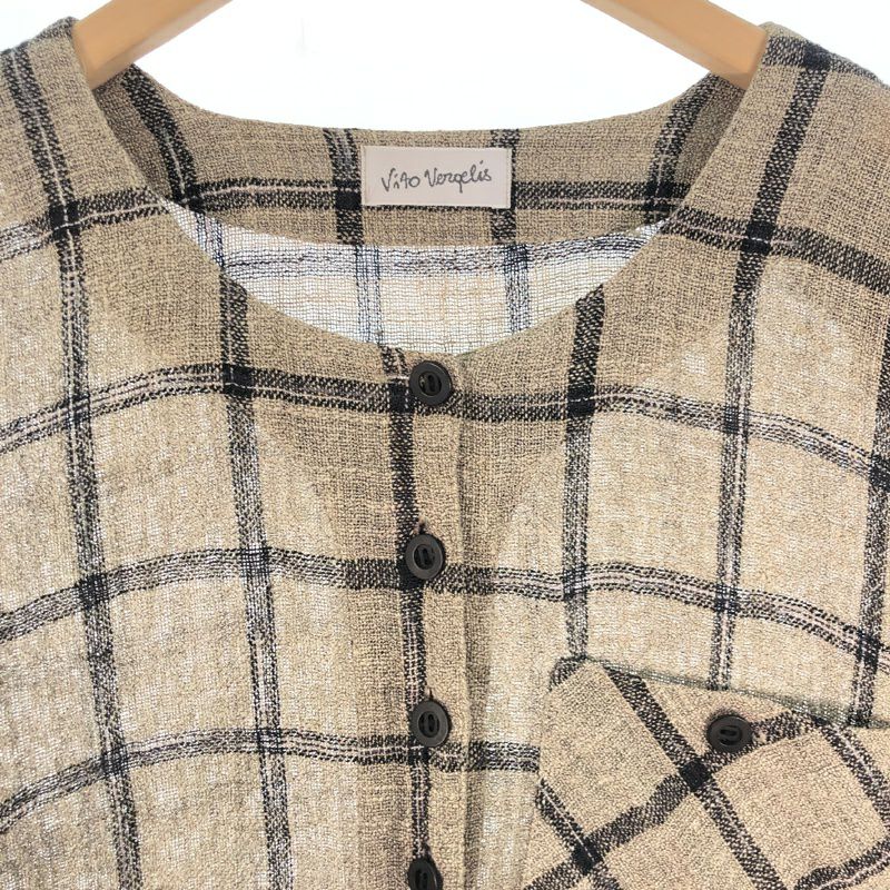 古着 チェック柄 リネン 半袖ワンピース