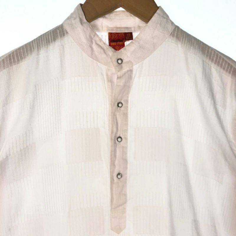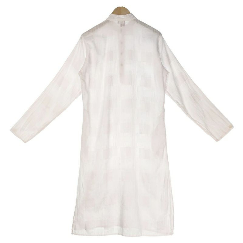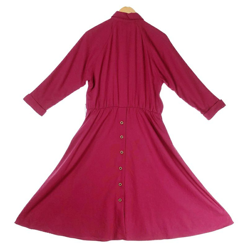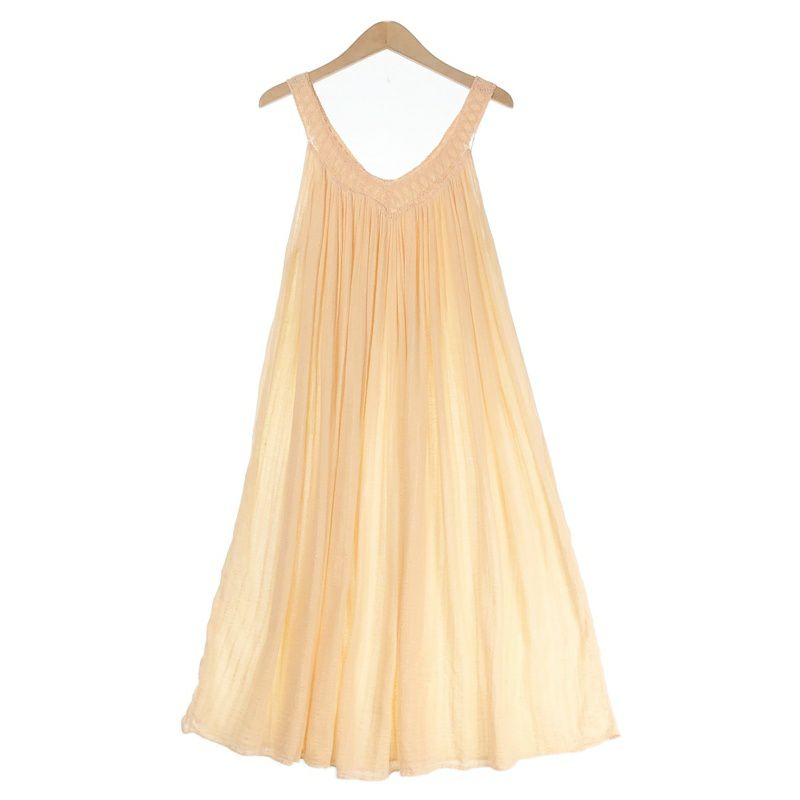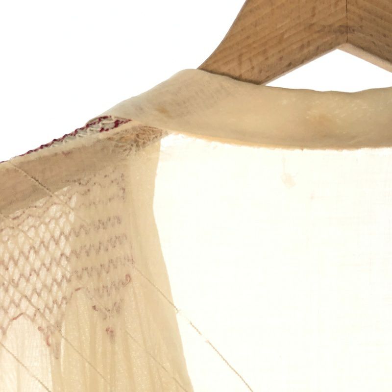 古着 ガーゼ風 ノーカラー 長袖ワンピース
