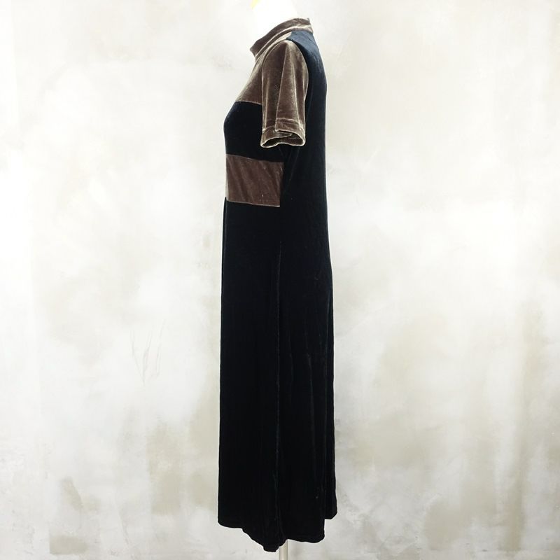 古着 2トーン ベロア 半袖ワンピース