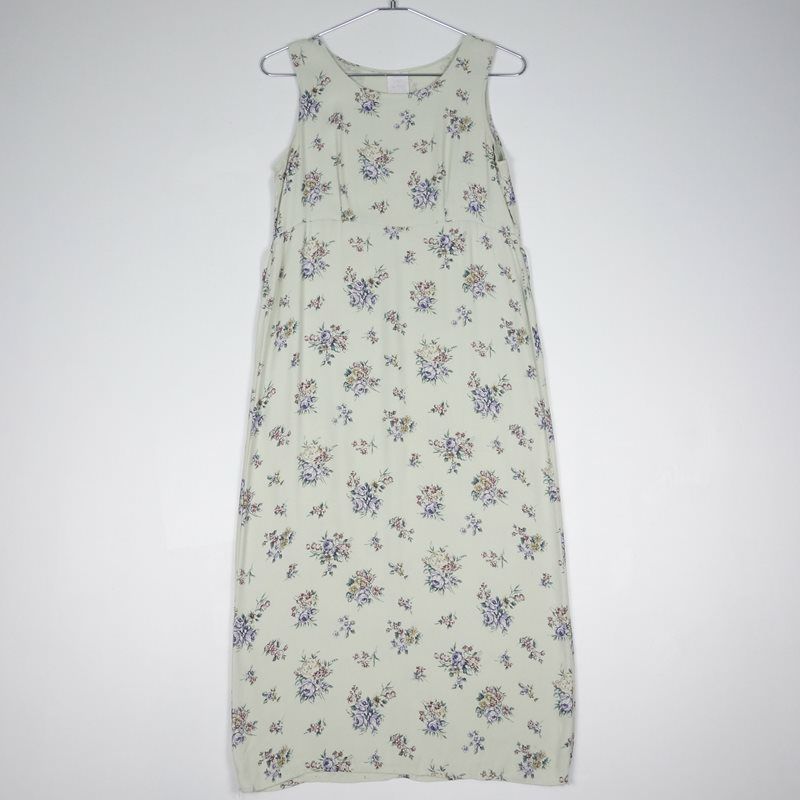古着 花柄 レーヨン ノースリーブワンピース