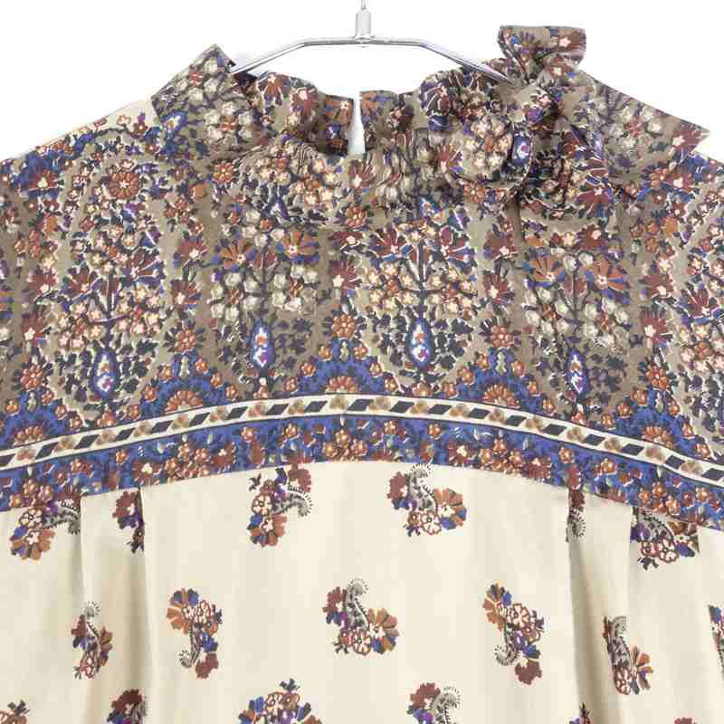 古着 ビジューパターン シルク ロングスリーブ ワンピース