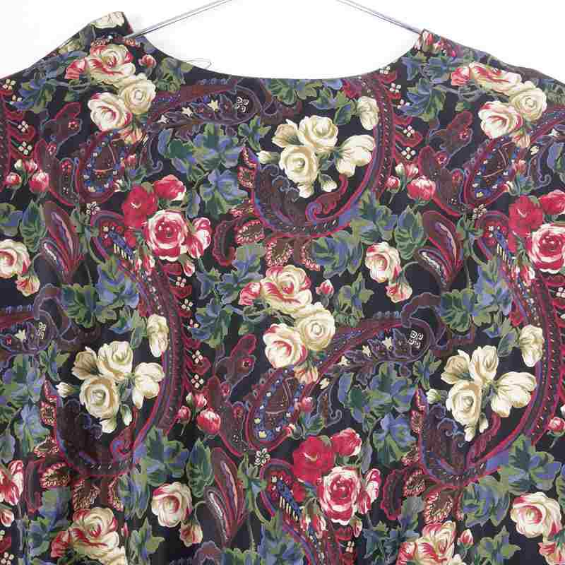 古着 花柄 前開き 開襟 ワンピース