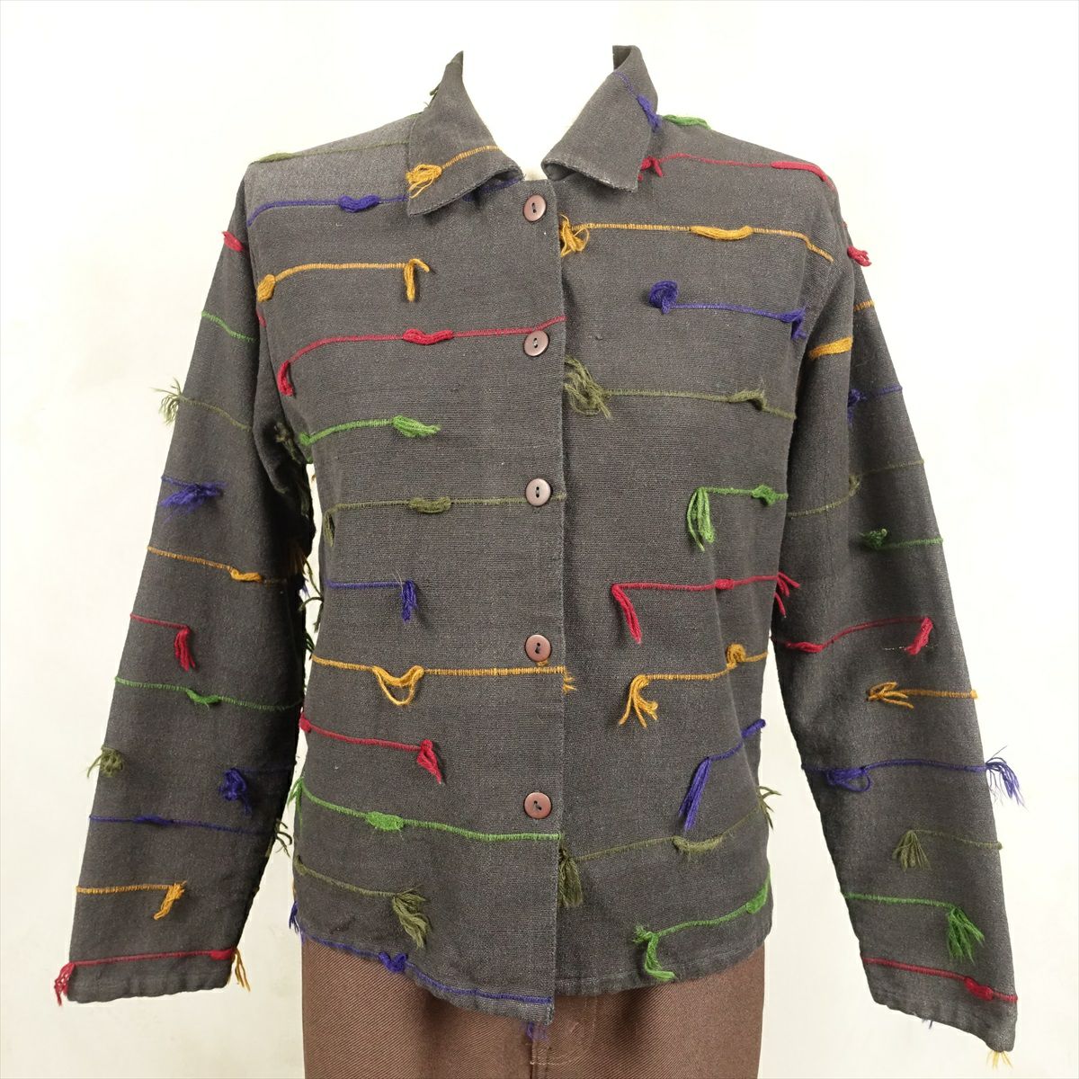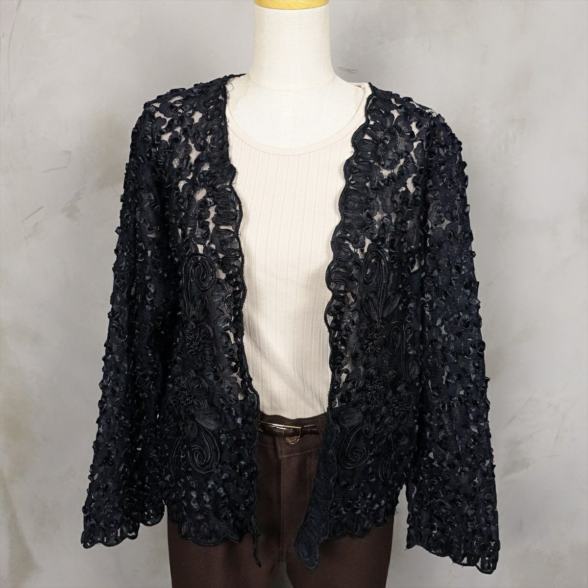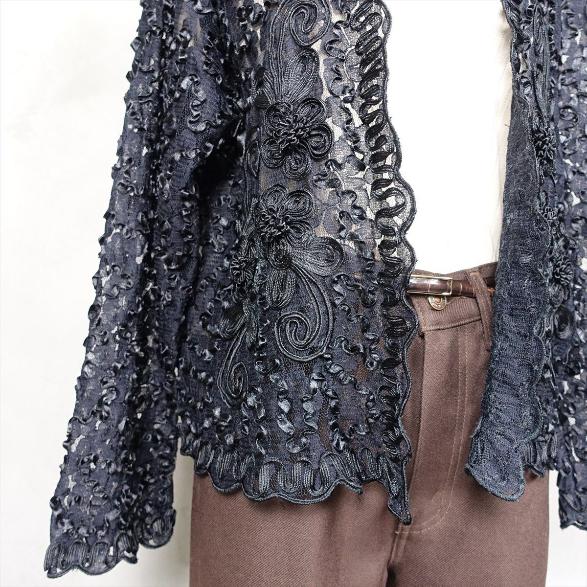 古着 シースルー 刺繍 前開き コットンジャケット