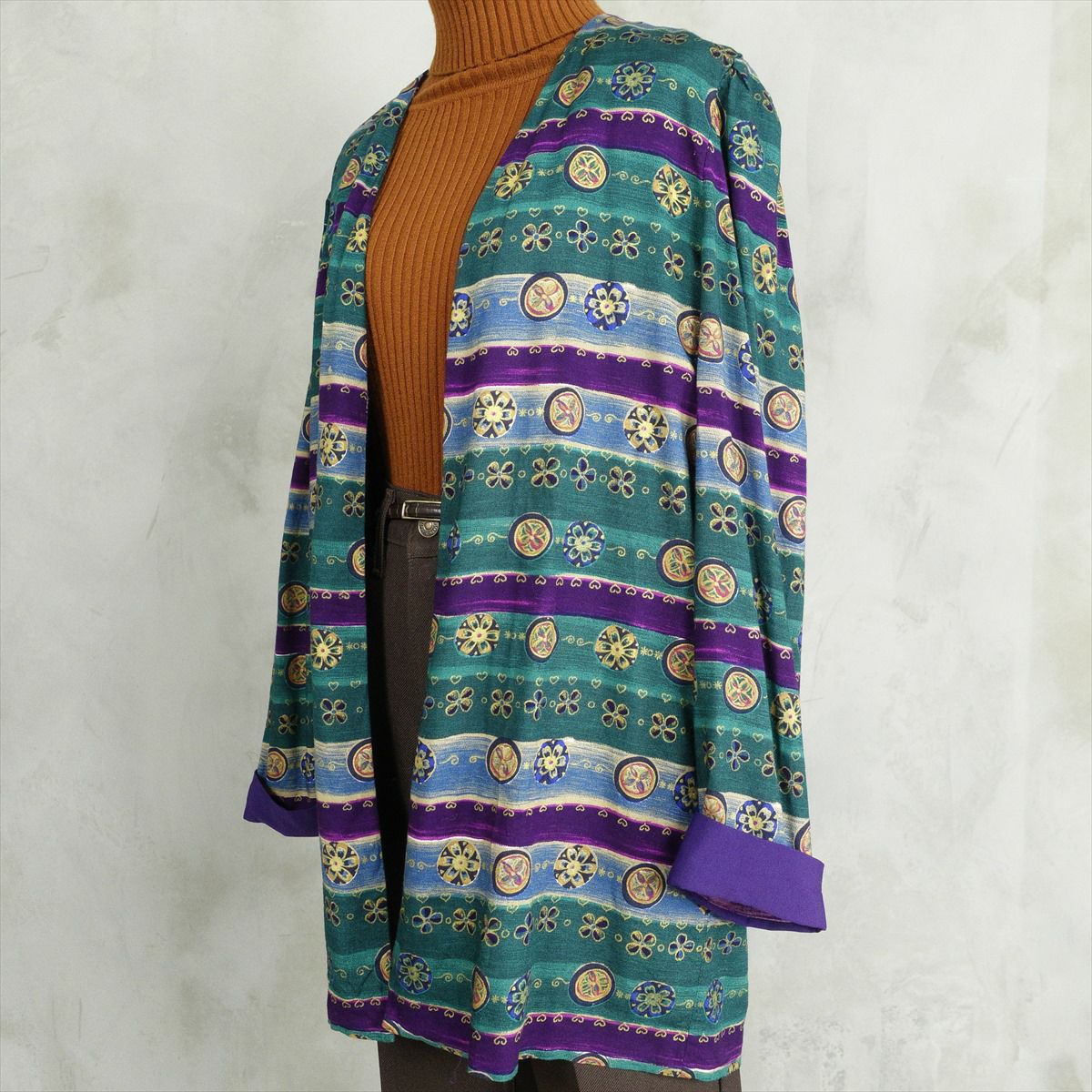 古着 TiBURON ノーカラー 唐草模様 コットンジャケット