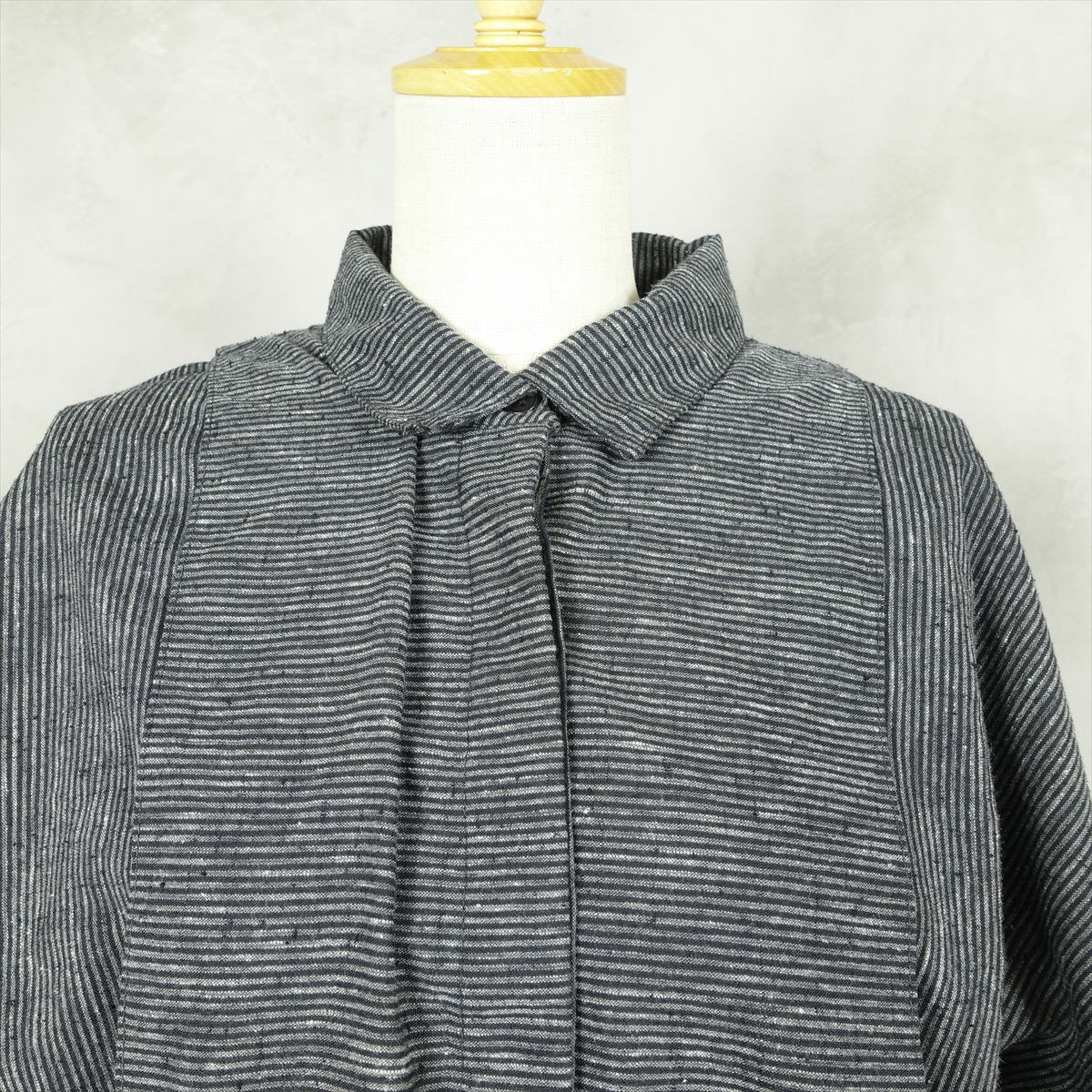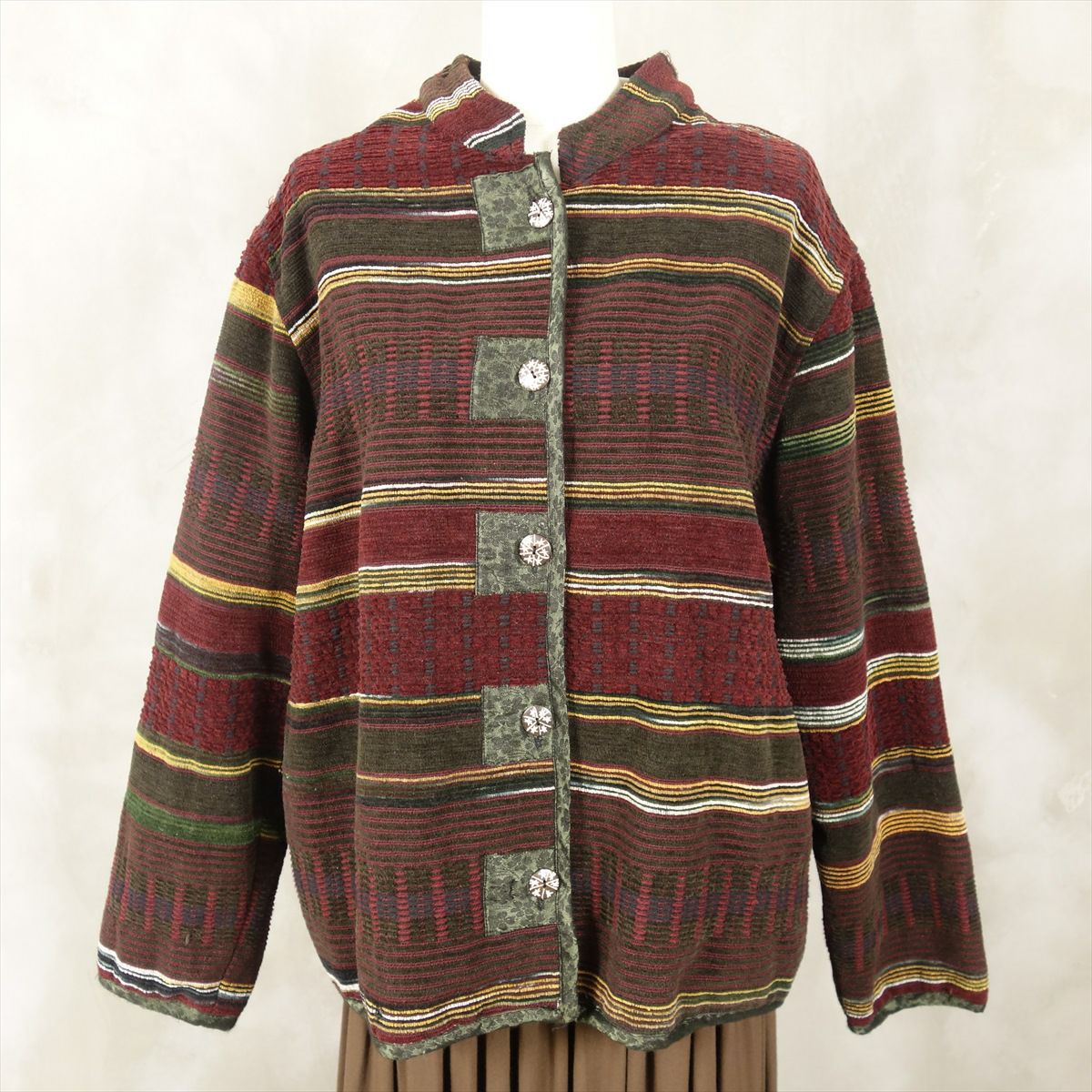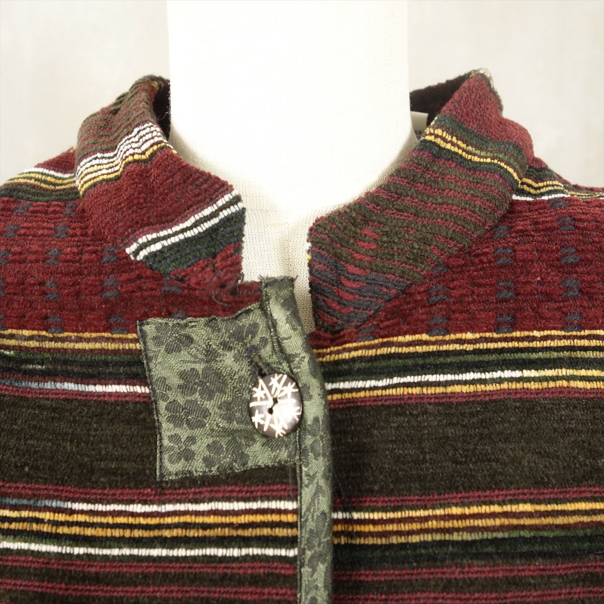 古着 ノーカラー マルチボーダー コットンジャケット