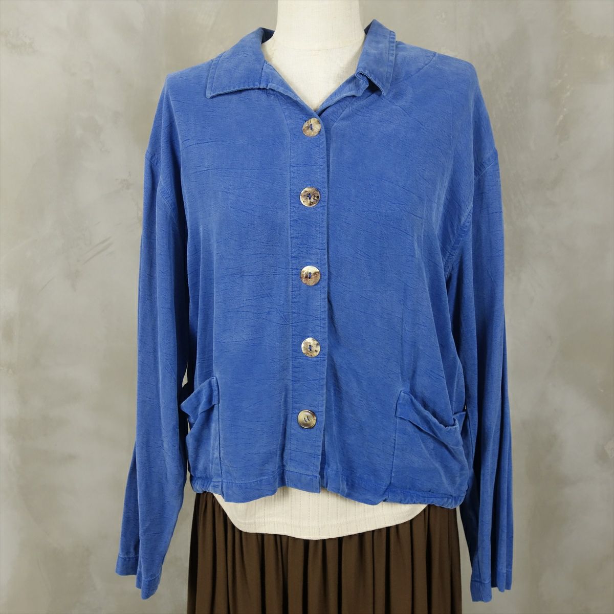 古着 オープンカラー ボックス型 シェルボタン コットンジャケット