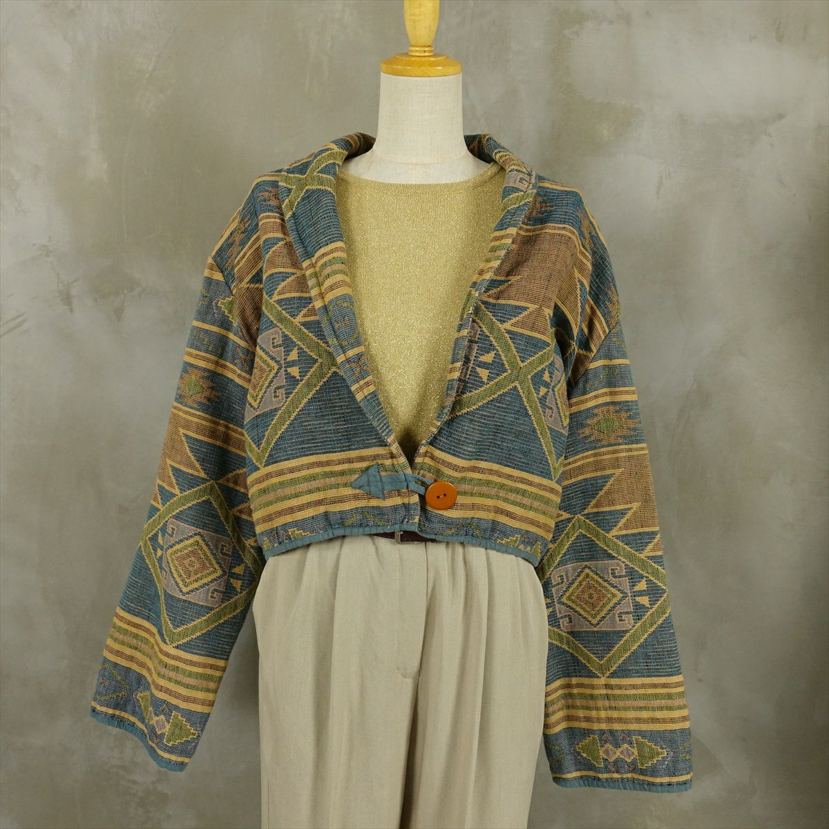 古着 ネイティブ柄 ショート丈 ゴブランジャケット