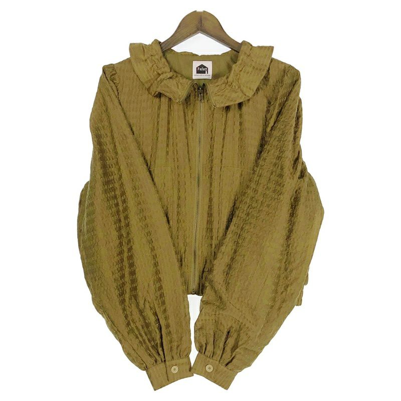 FAFATT チンストラップ付 ギャザー ナイロンジャケット カーキ