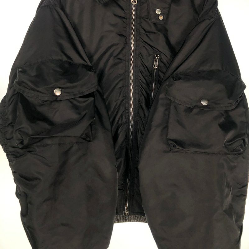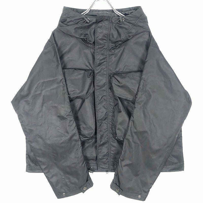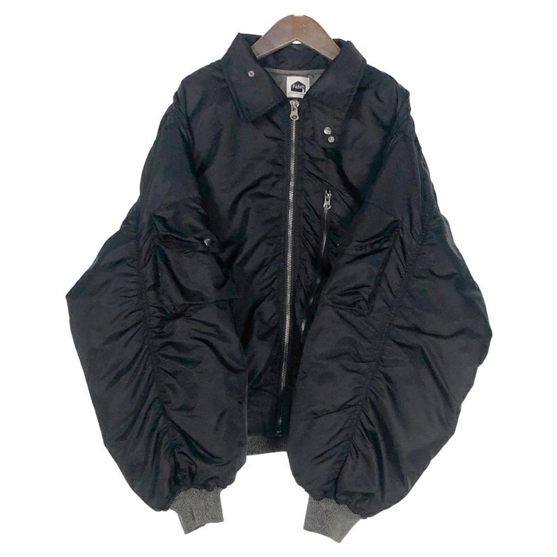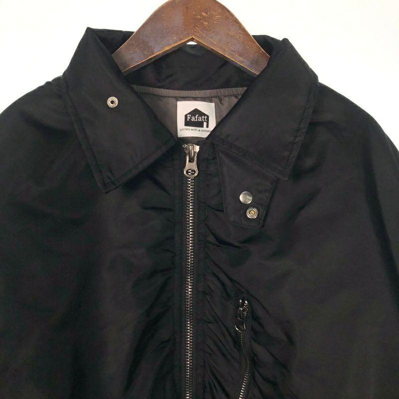 FAFATT チンストラップ付 ギャザー ナイロンジャケット ブラック