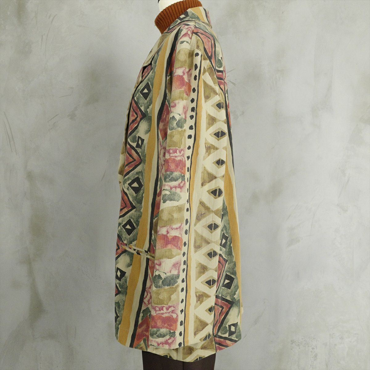古着 RichardWarren 総柄 ノーカラージャケット