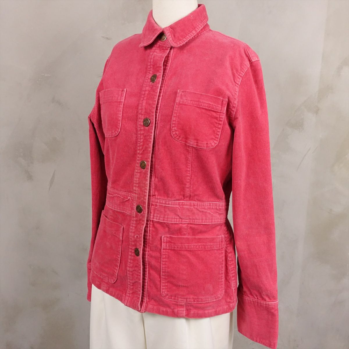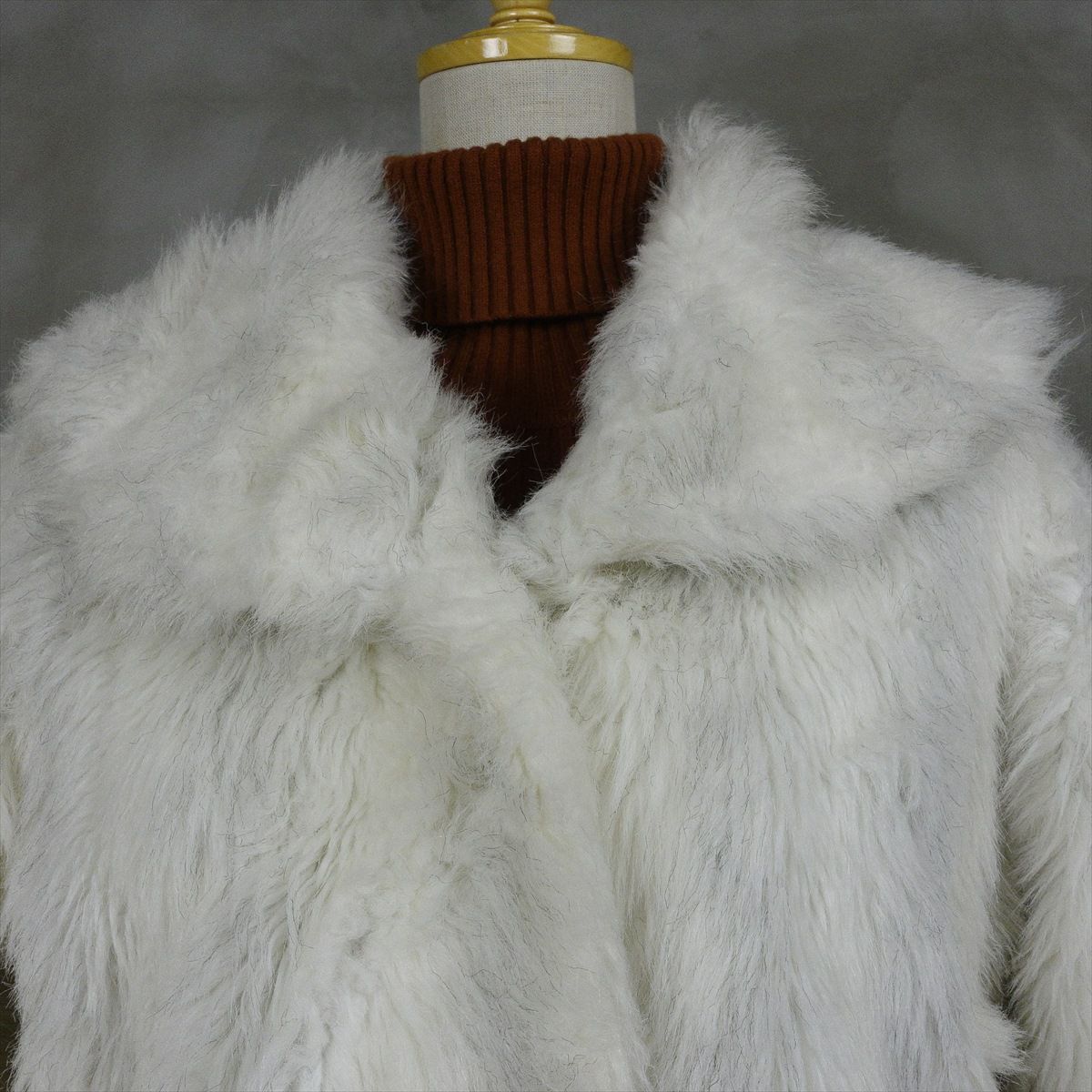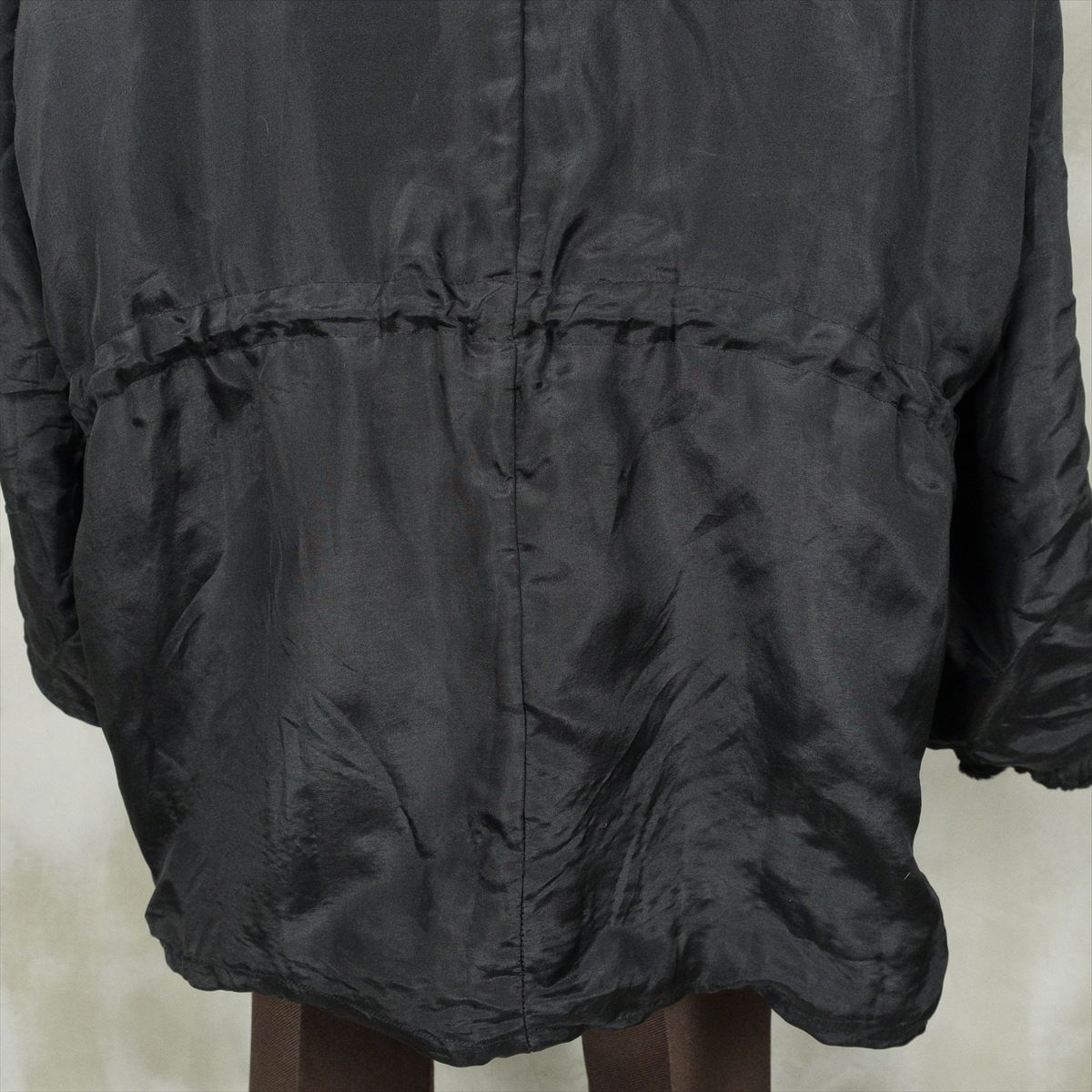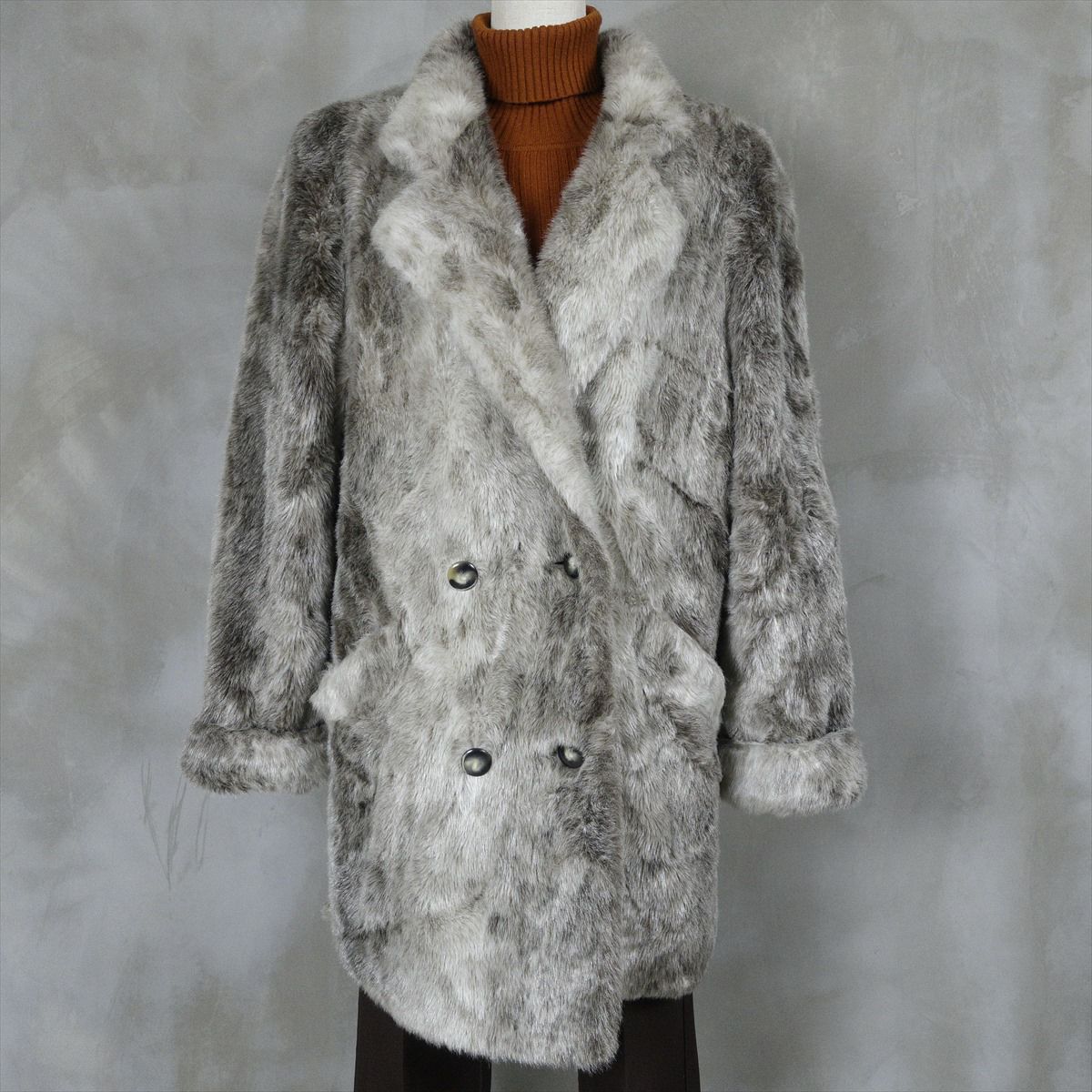 合皮のレザーで作られたノーカラーのコートです。 シンプルな作りですが、ステッチがアクセントとなり一枚で可愛いデザインです。 ウェストのベルトを絞るとワンピースのようにも着て頂けます。 古着では珍しい肩の落ちるデザインの為、着こなしやすいレザーアイテムです。
