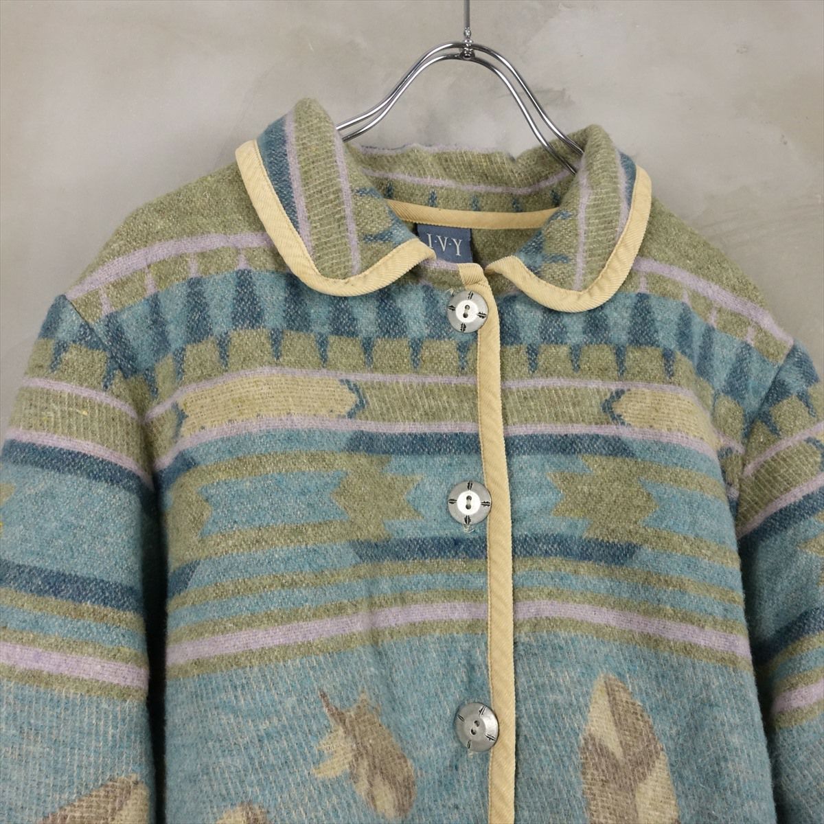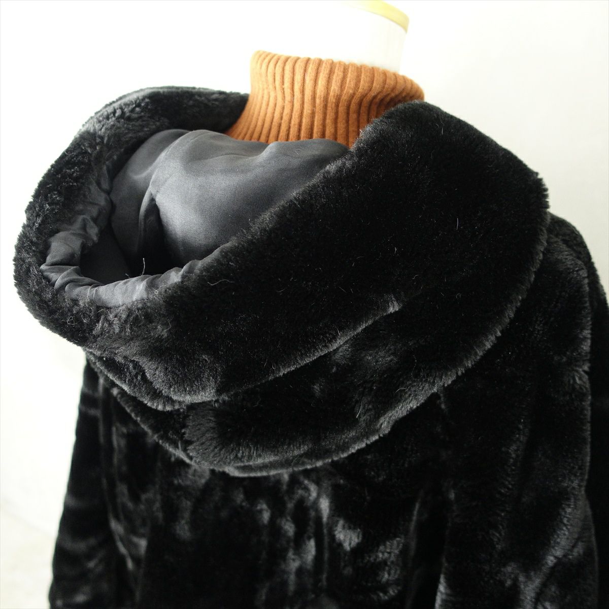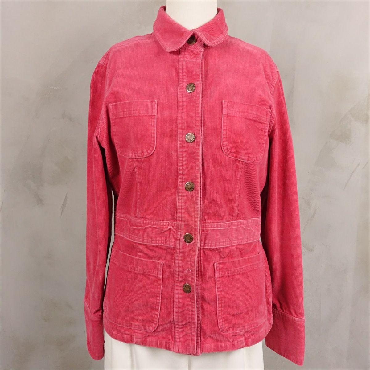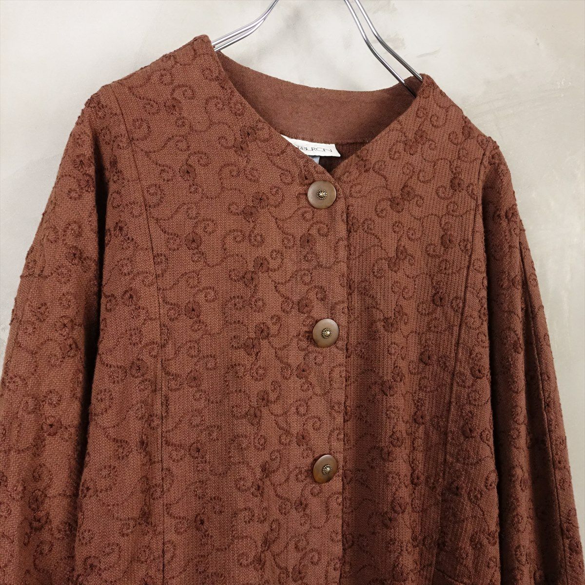 合皮のレザーで作られたノーカラーのコートです。 シンプルな作りですが、ステッチがアクセントとなり一枚で可愛いデザインです。 ウェストのベルトを絞るとワンピースのようにも着て頂けます。 古着では珍しい肩の落ちるデザインの為、着こなしやすいレザーアイテムです。
