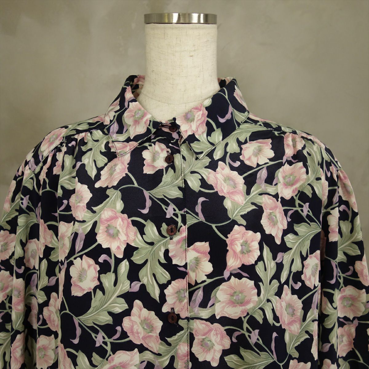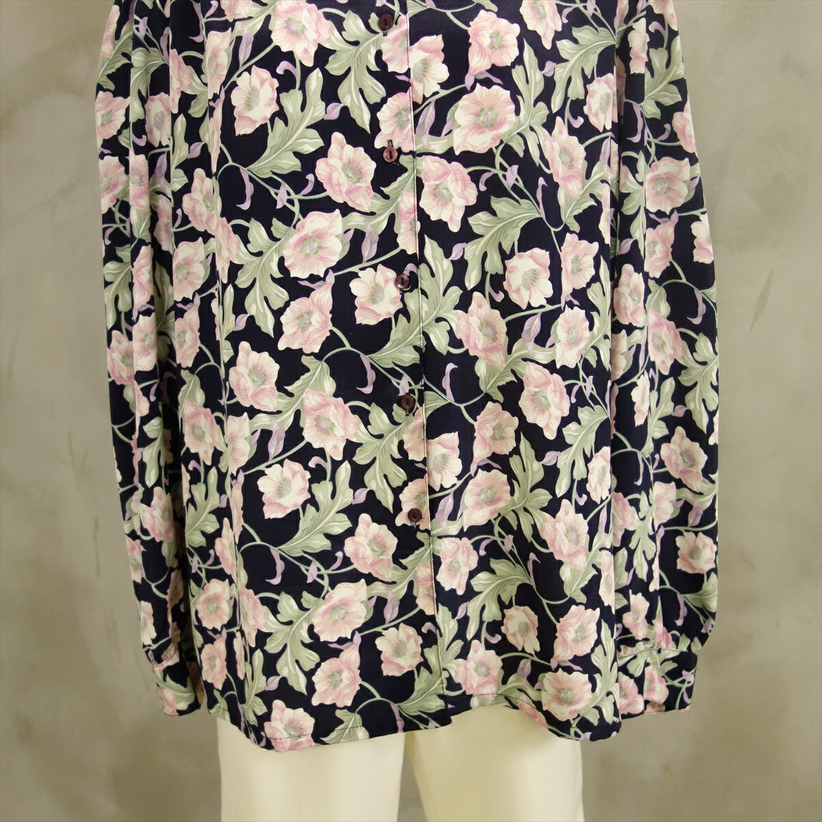 古着 花柄 レーヨン 長袖シャツ