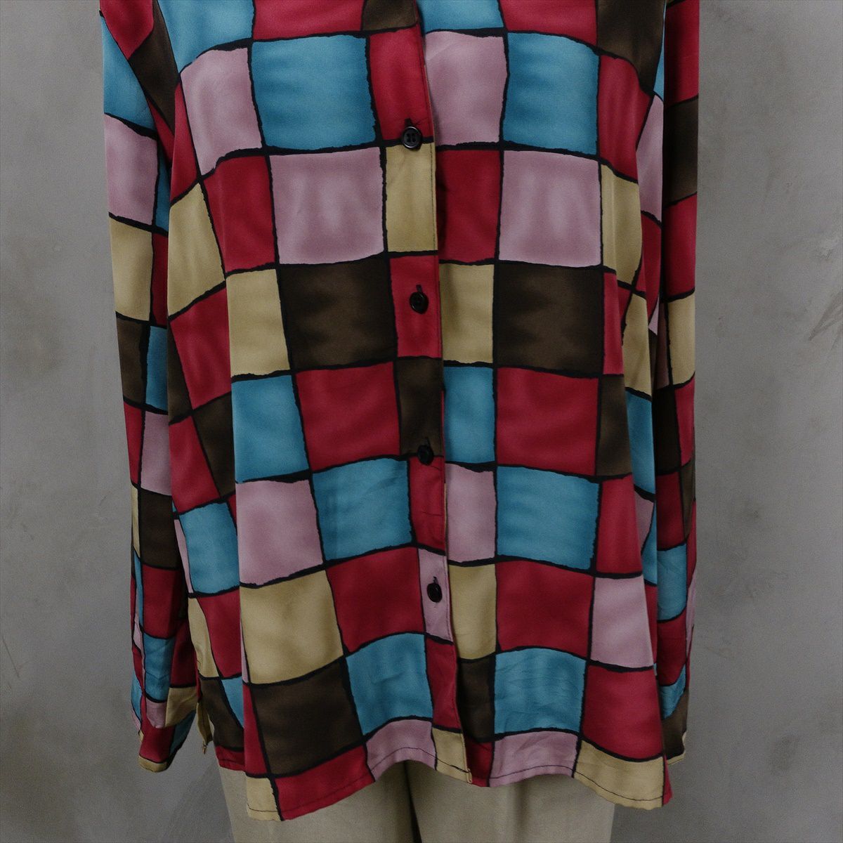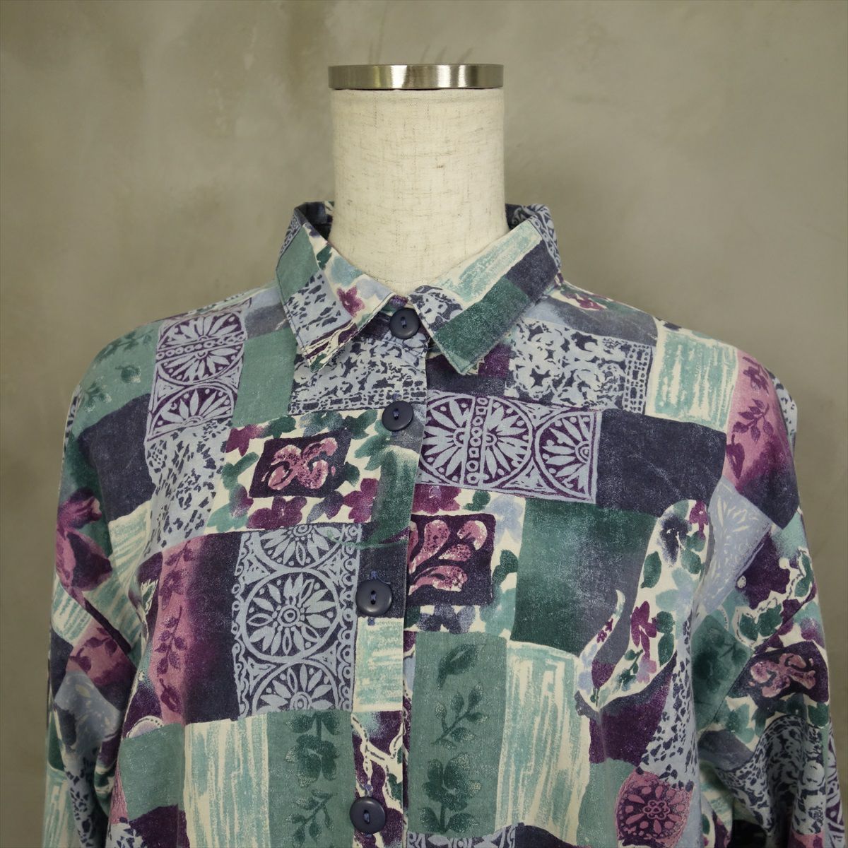 古着 総柄 シルク 長袖シャツ