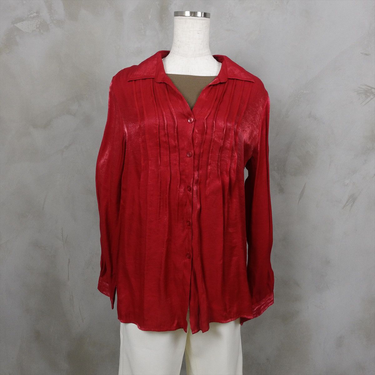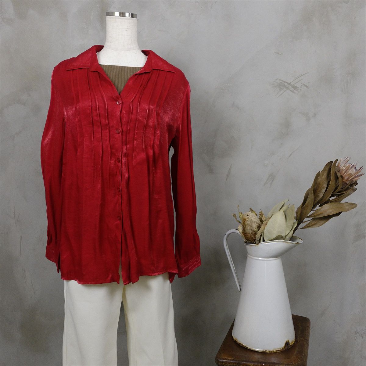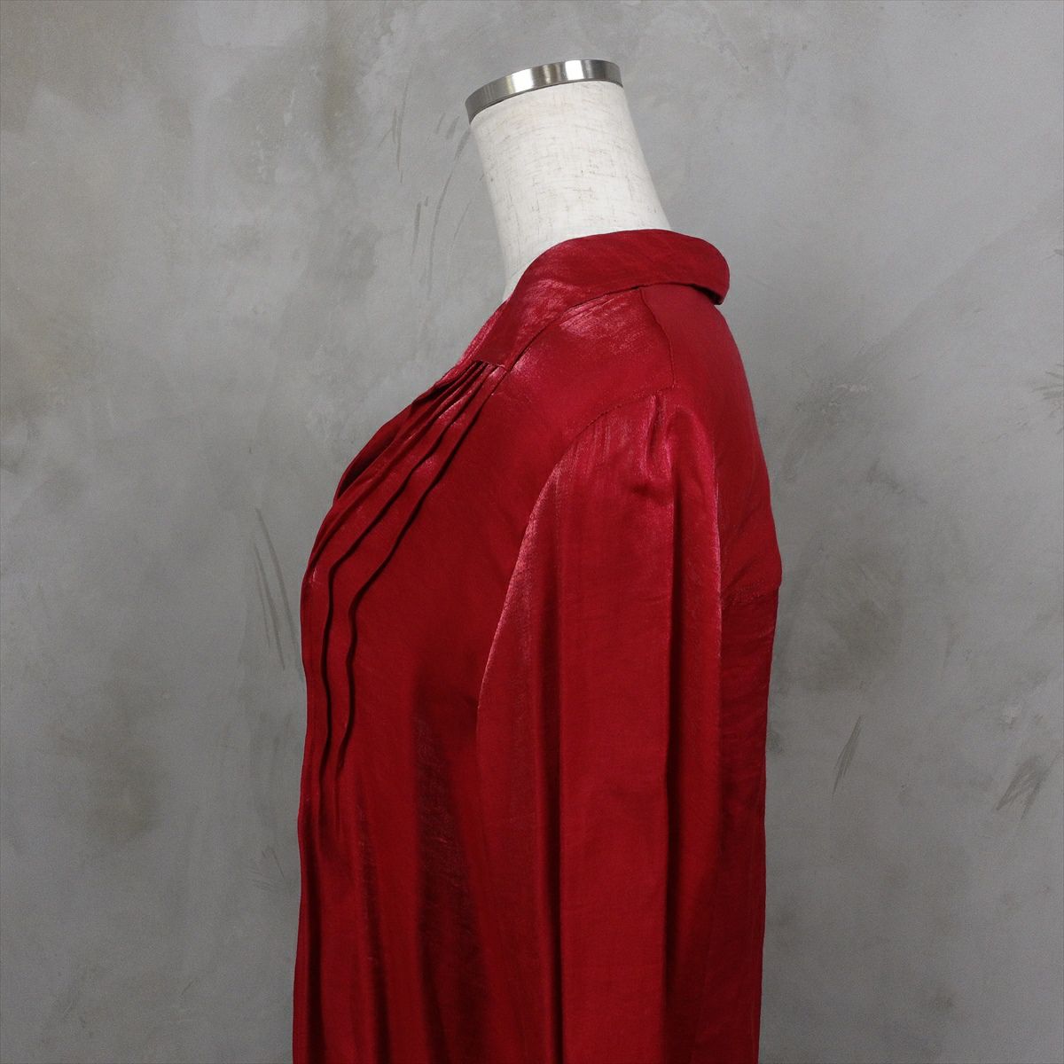 古着 オープンカラー ピンタックブラウス レッド