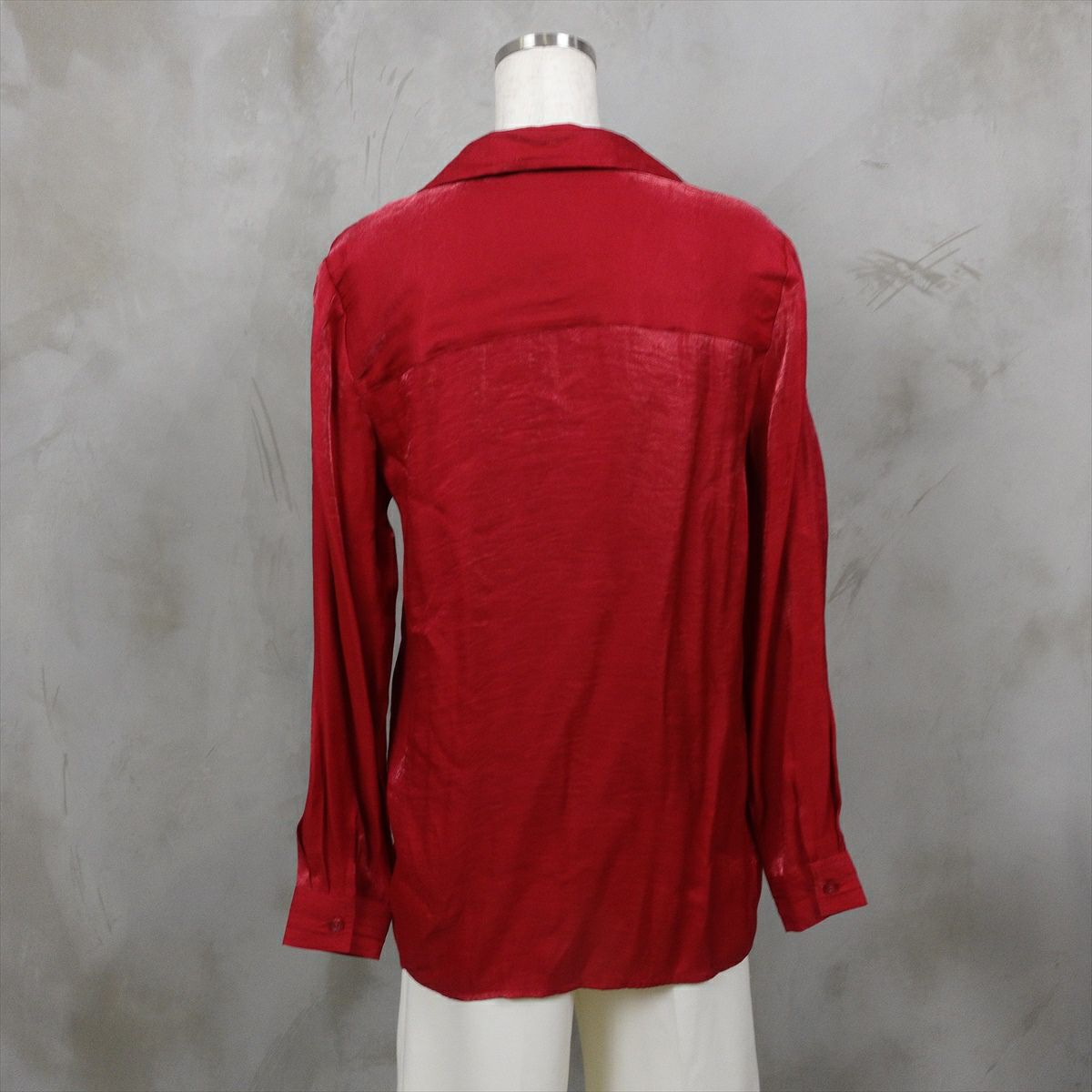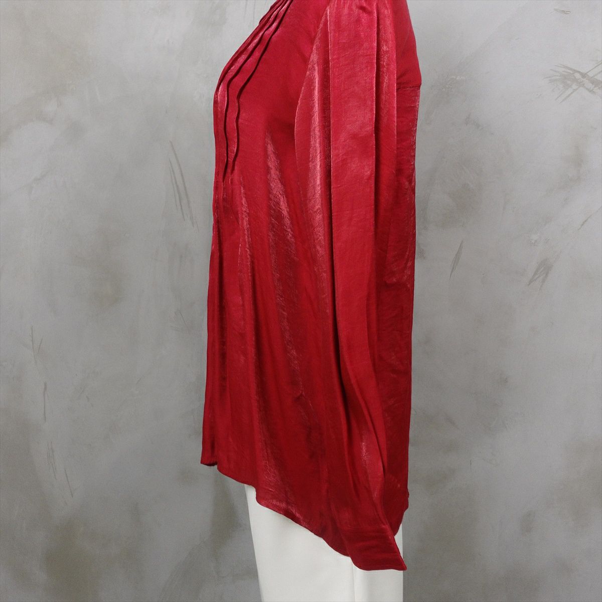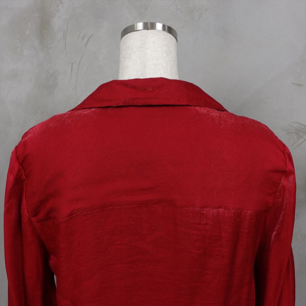 古着 オープンカラー ピンタックブラウス レッド