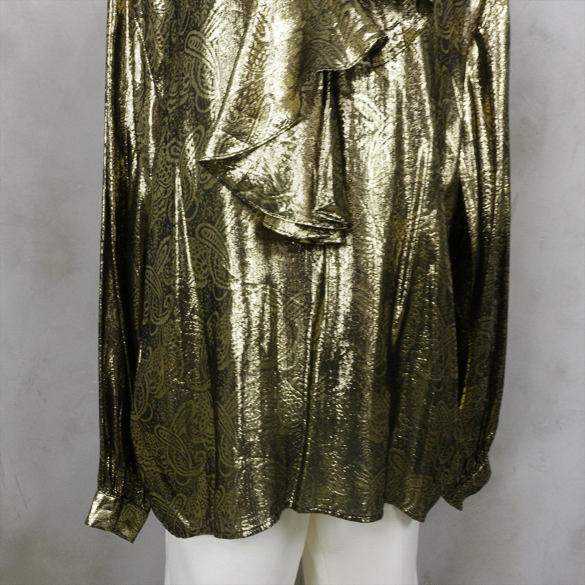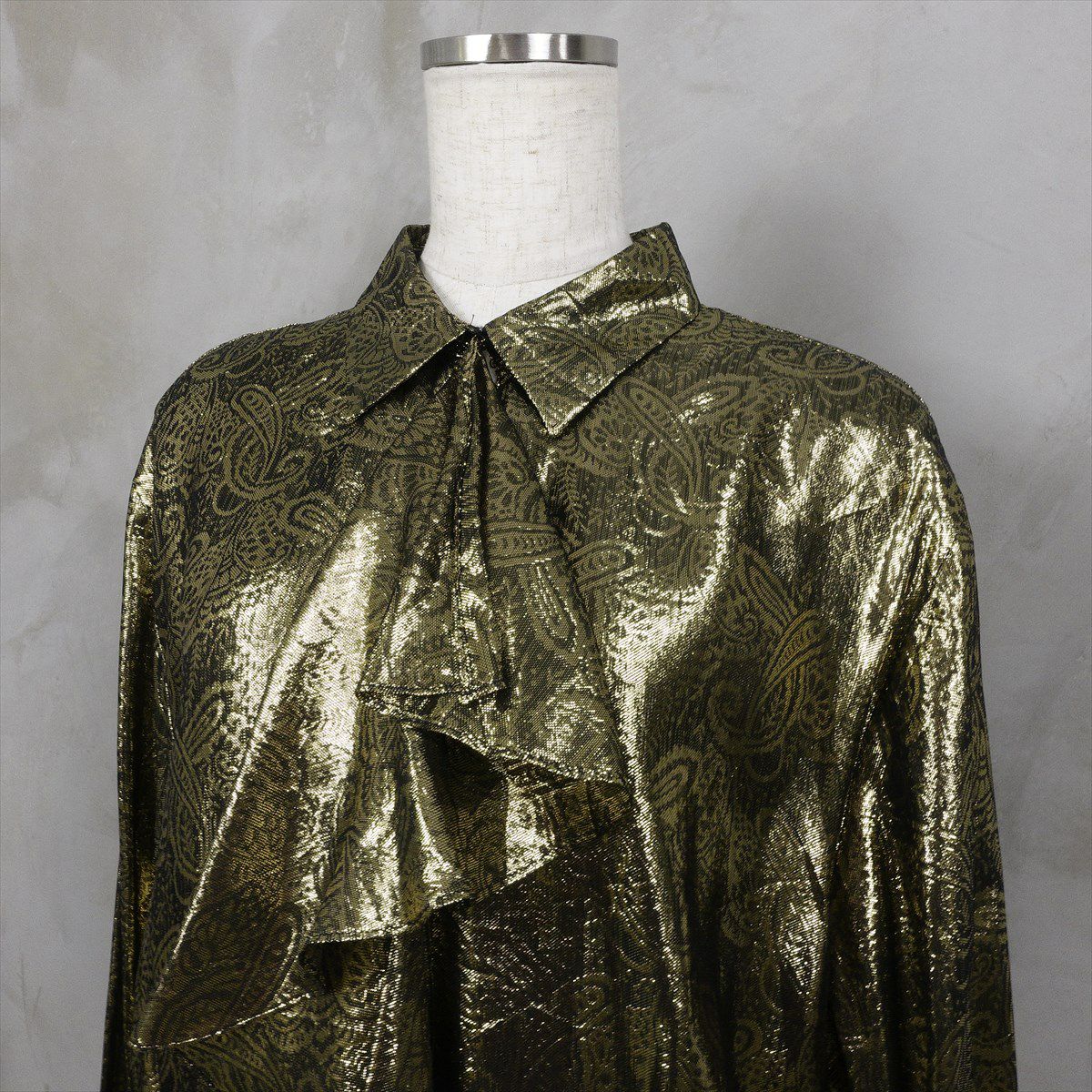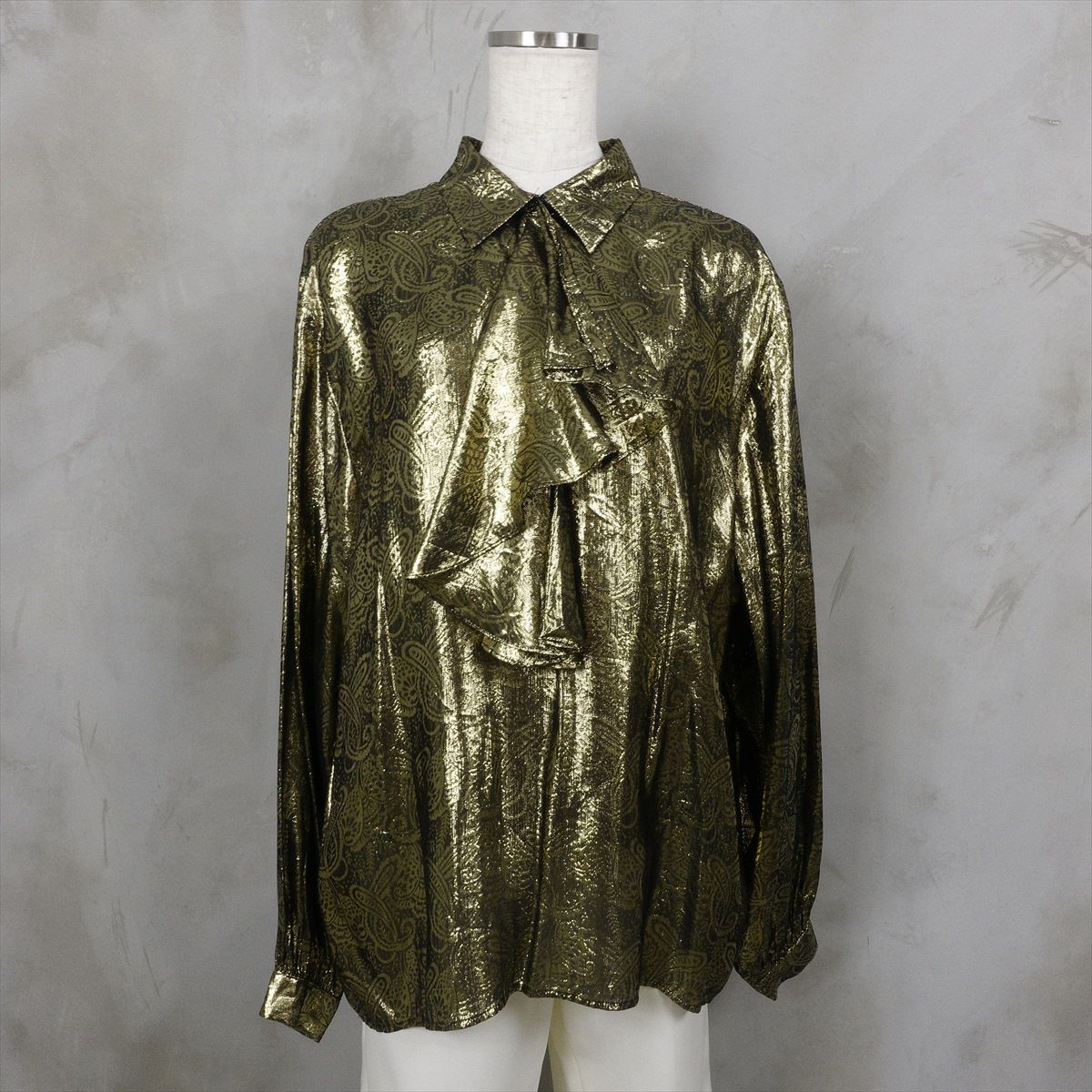 古着 メタリックフリルブラウス ペイズリー
