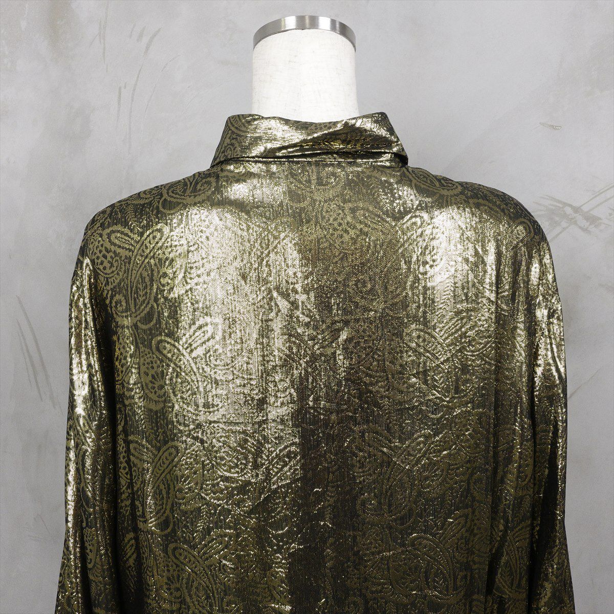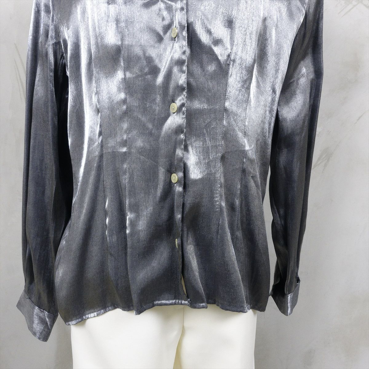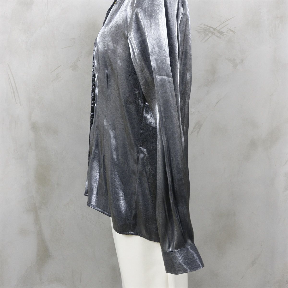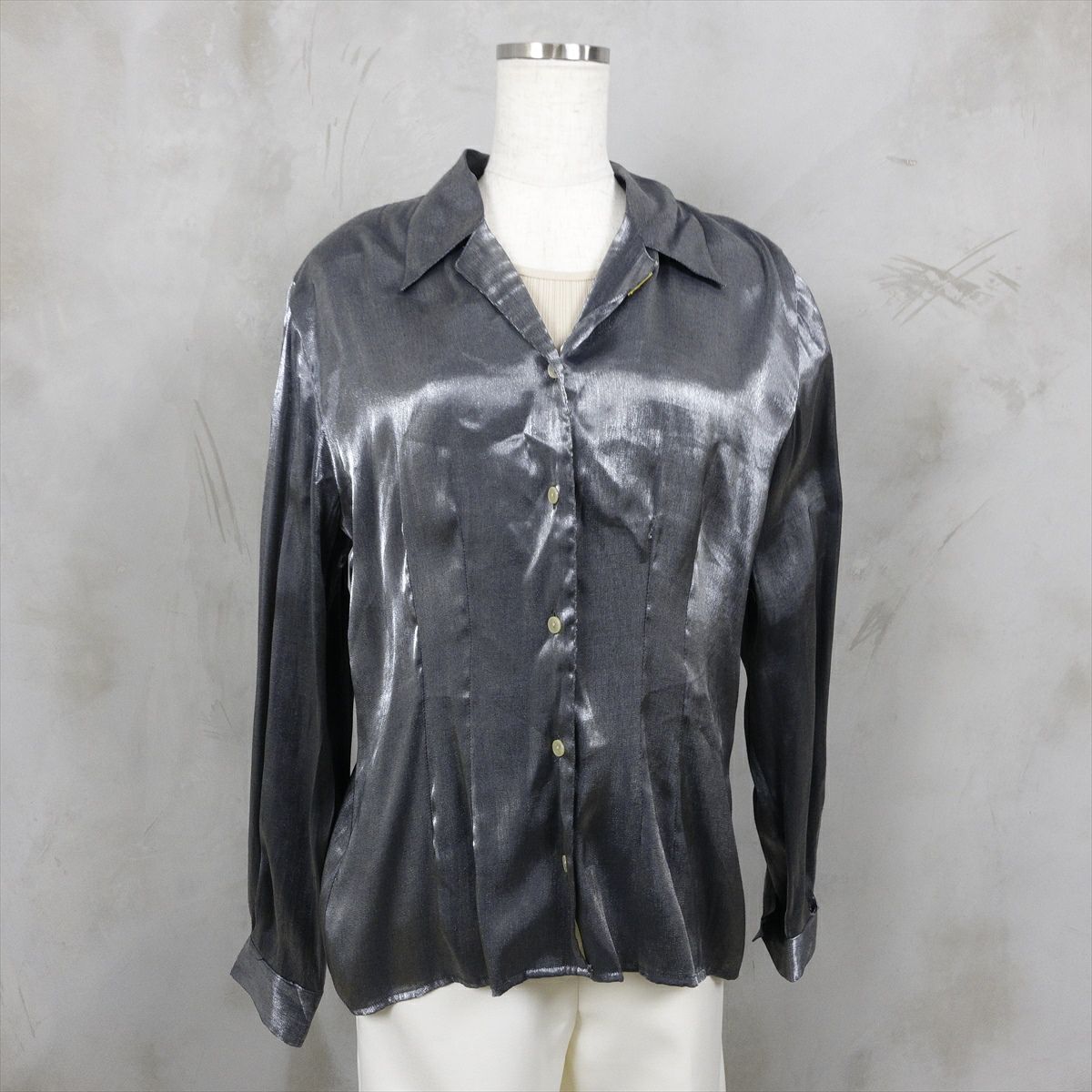 古着 長袖メタリックブラウス シルバー
