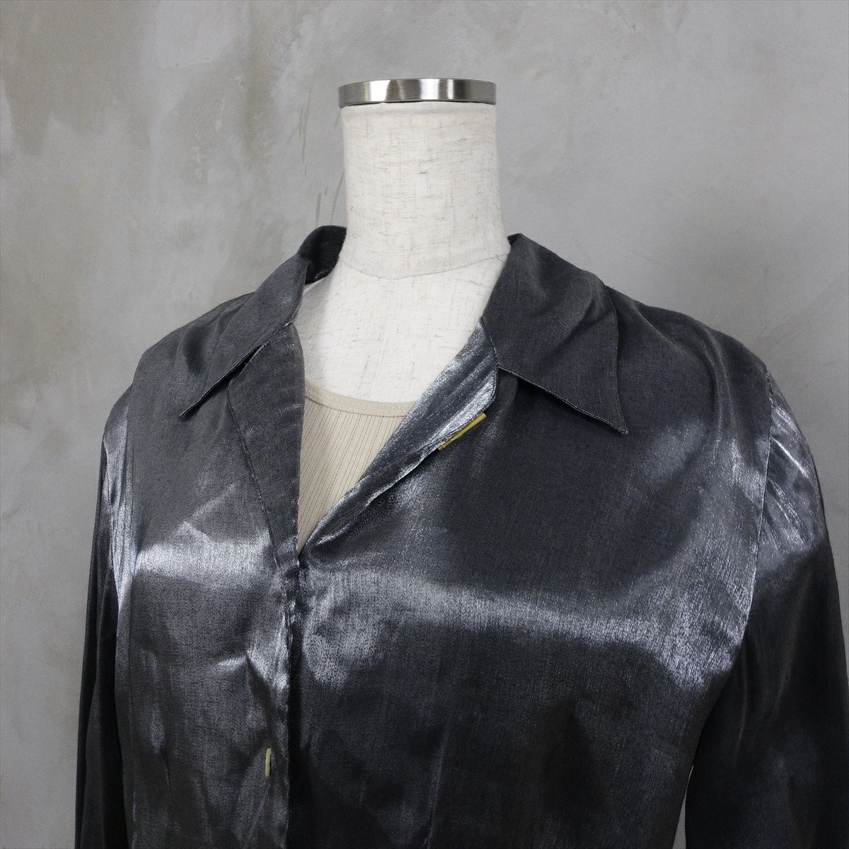 古着 オープンカラーメタリックブラウス シルバー