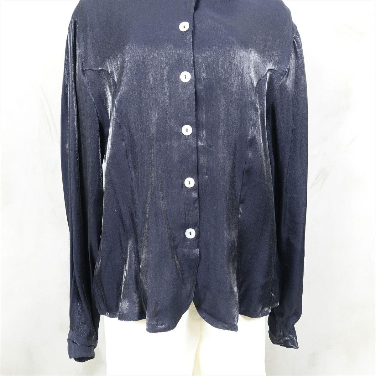 古着 長袖メタリックブラウス ブラック シェルボタン