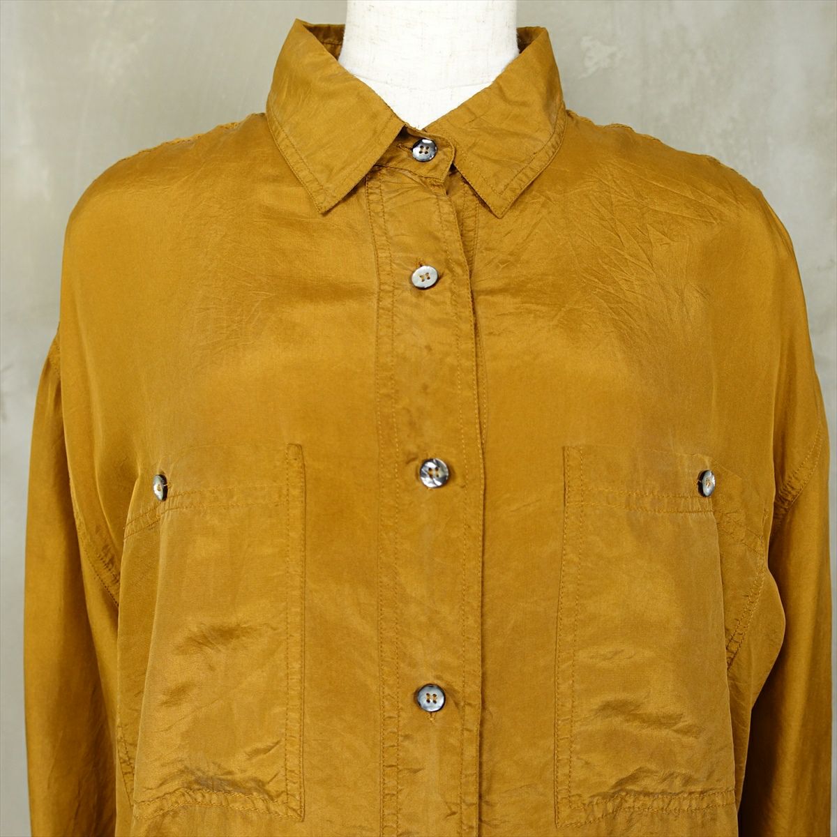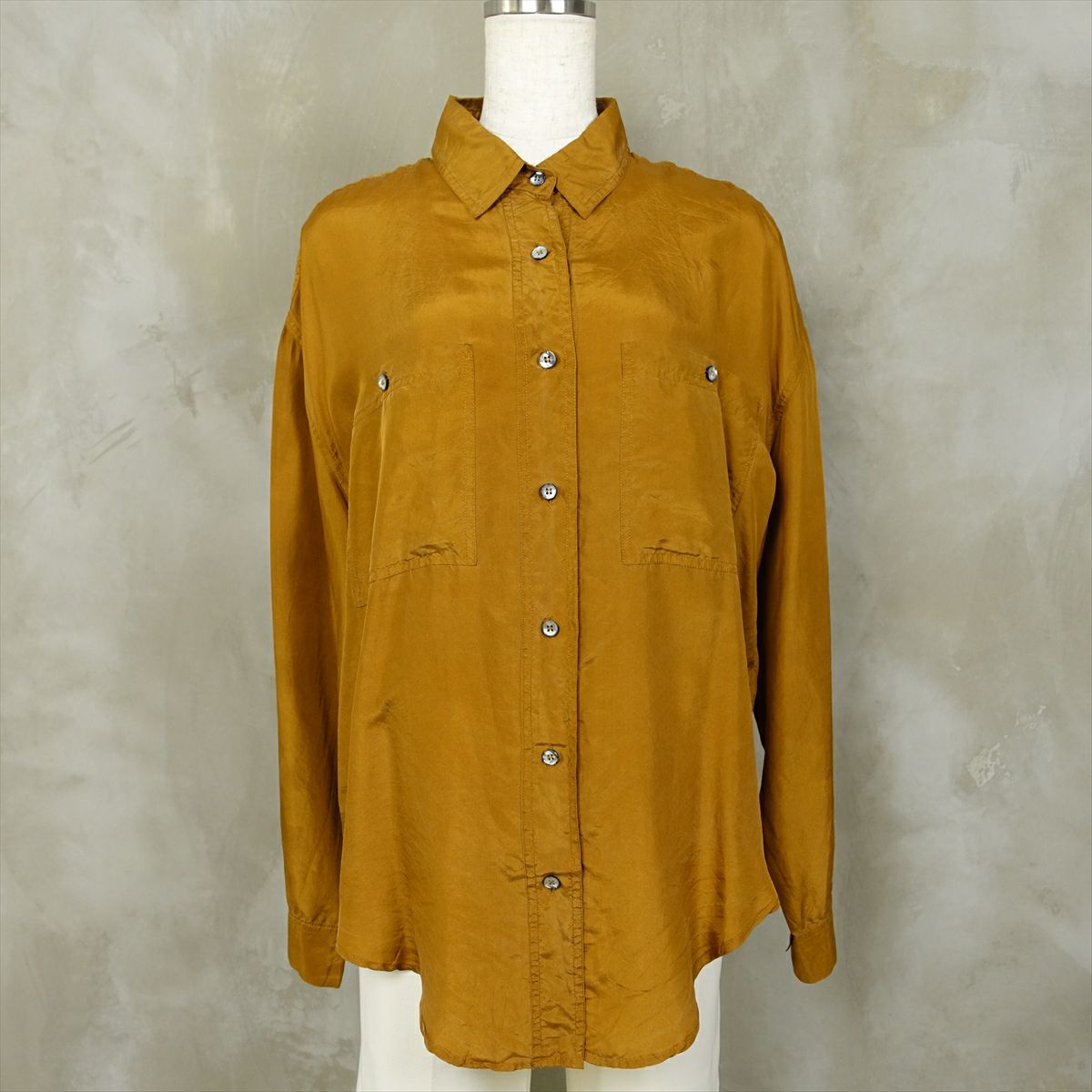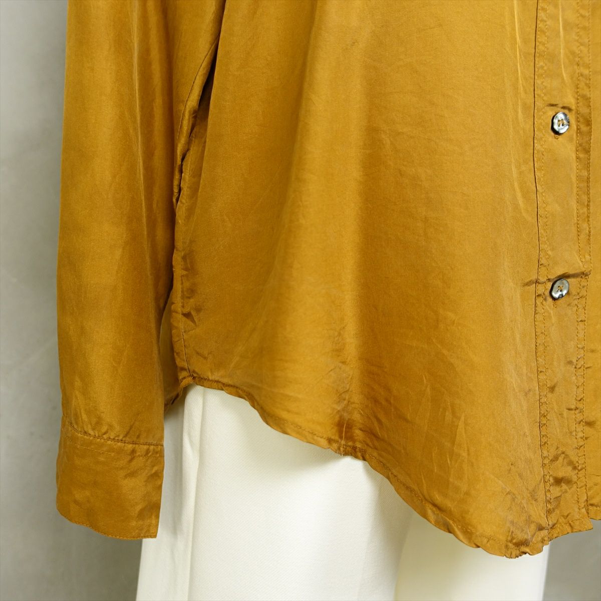 古着 シルク 無地 長袖シャツ