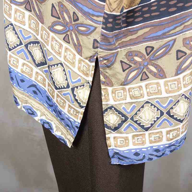 古着 開襟 総柄 シルク 半袖シャツ