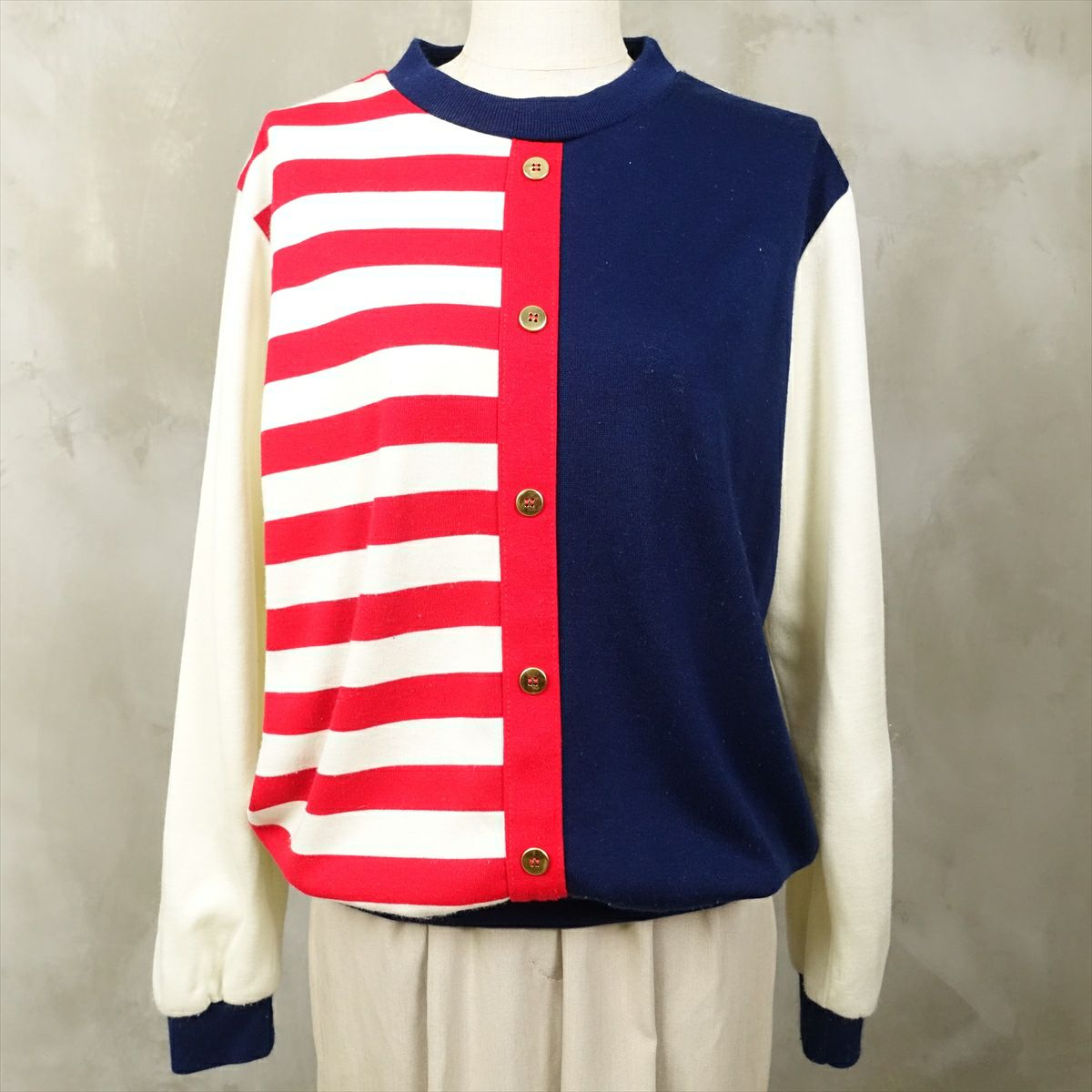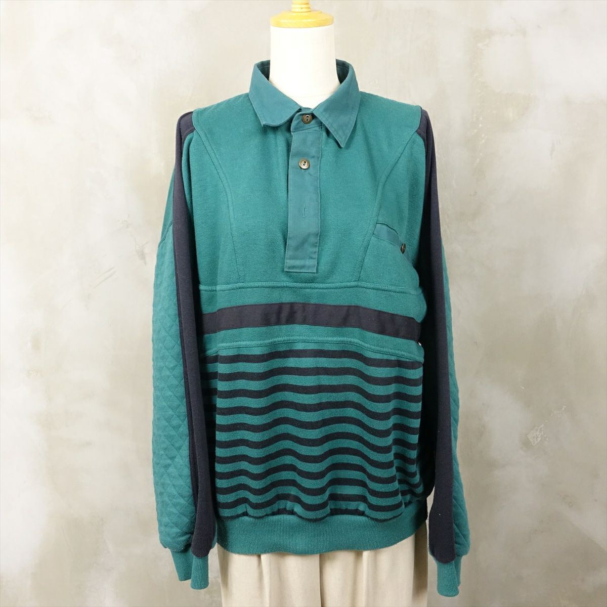 古着 マルチパターン ポロカラー スウェット