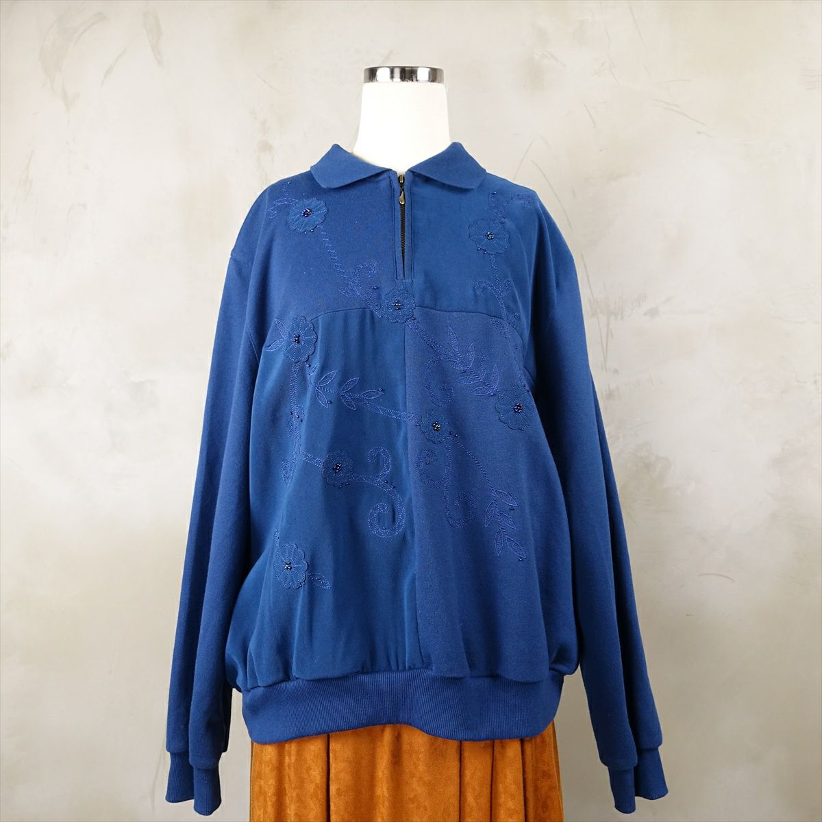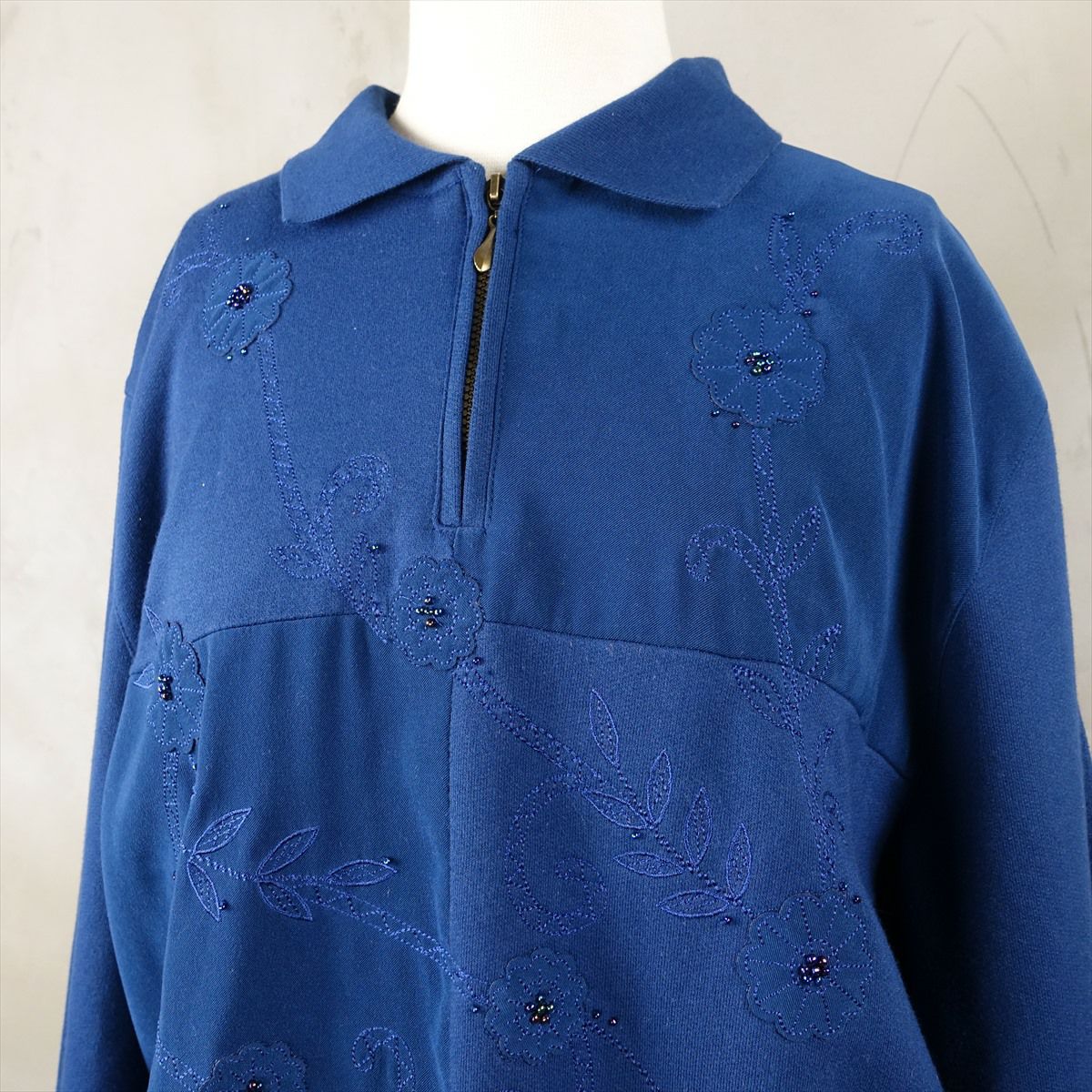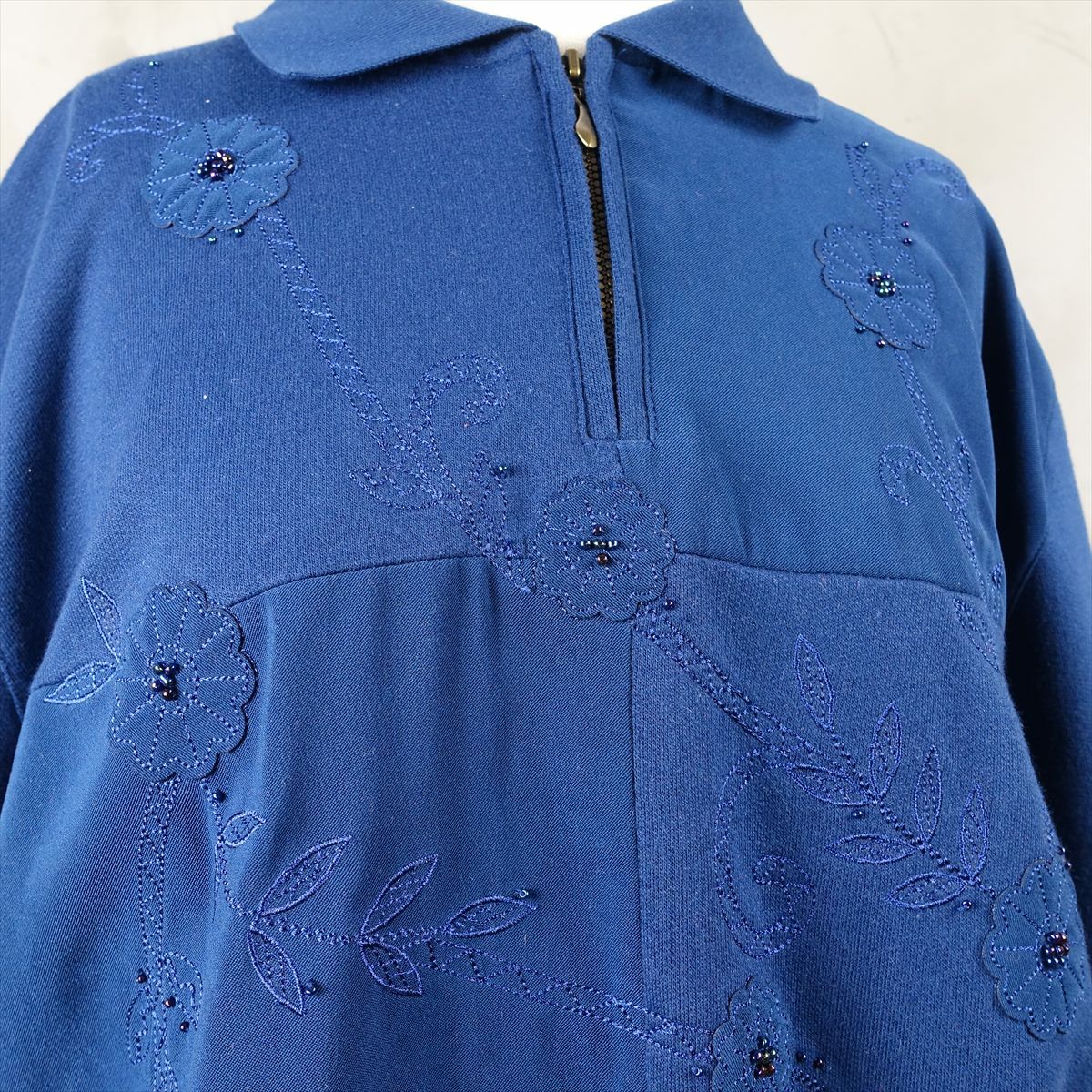 古着 ハーフジップ 刺繍 スウェット