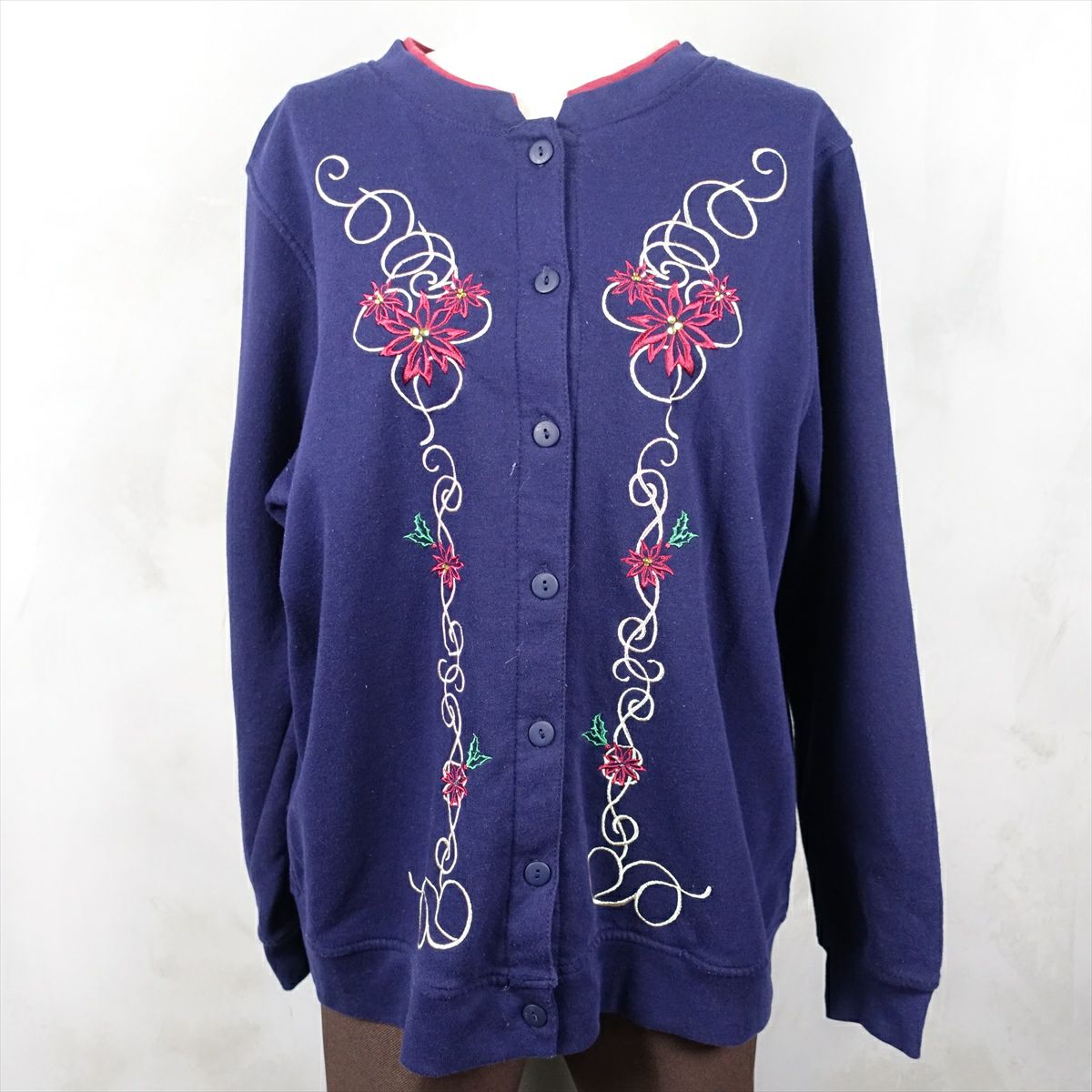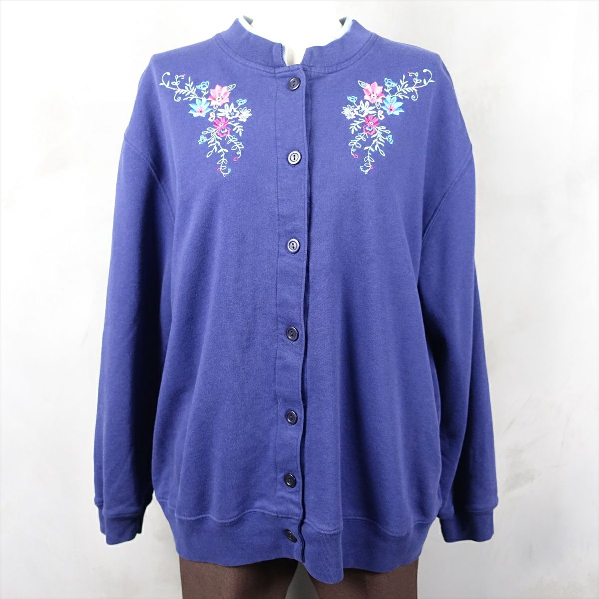 古着 JOEBOXER 刺繍 総柄 スウェットカーディガン