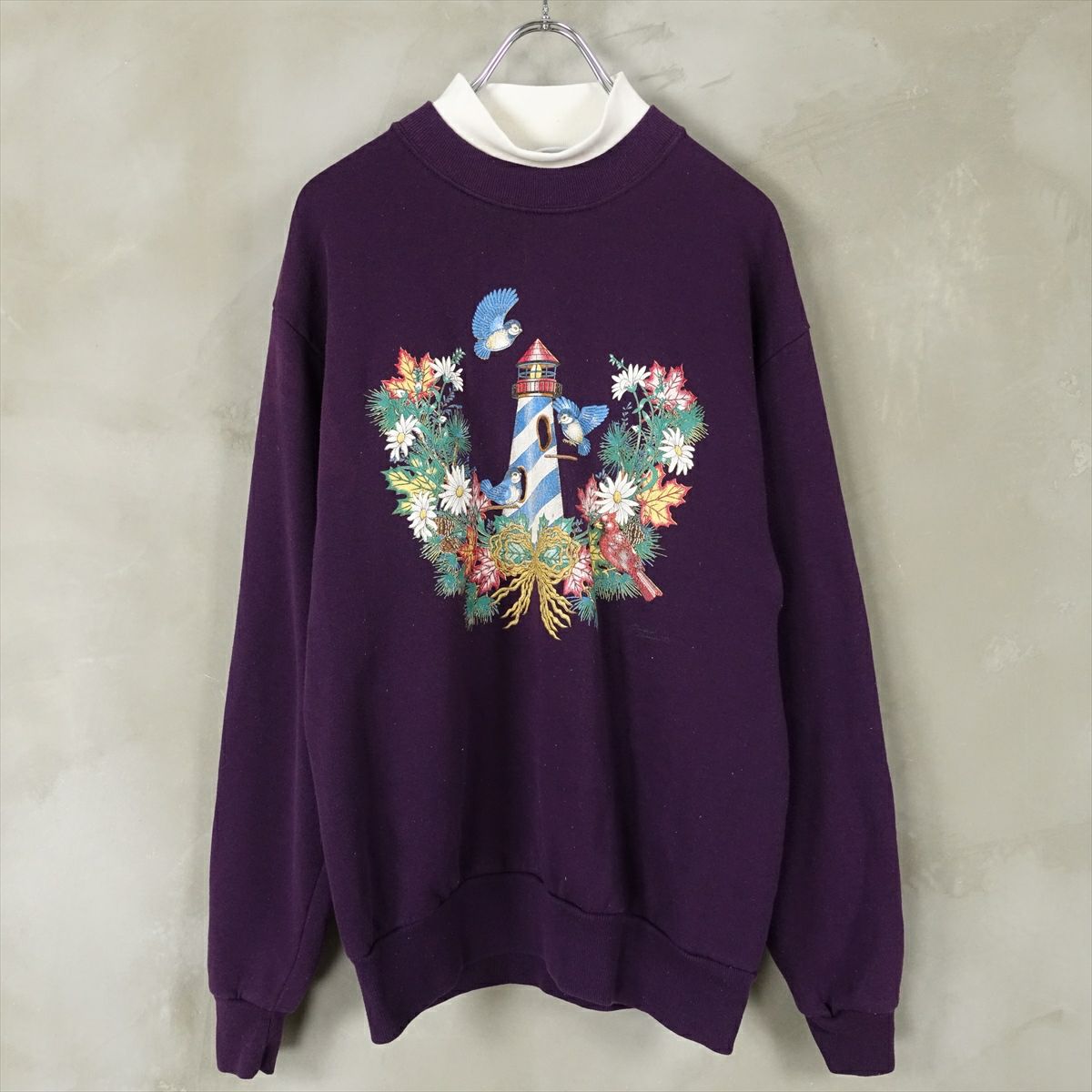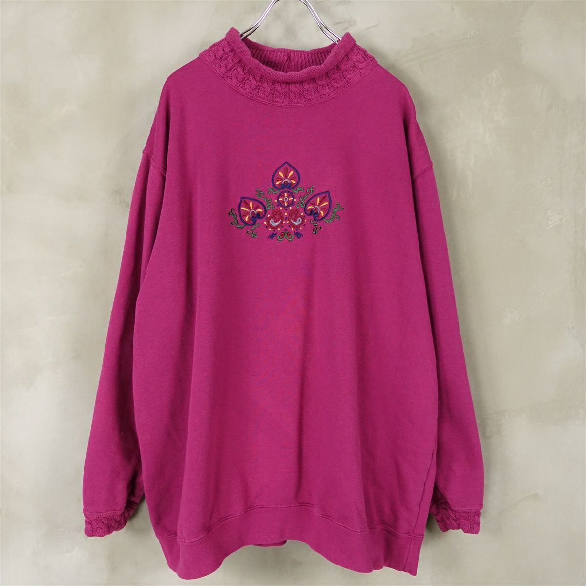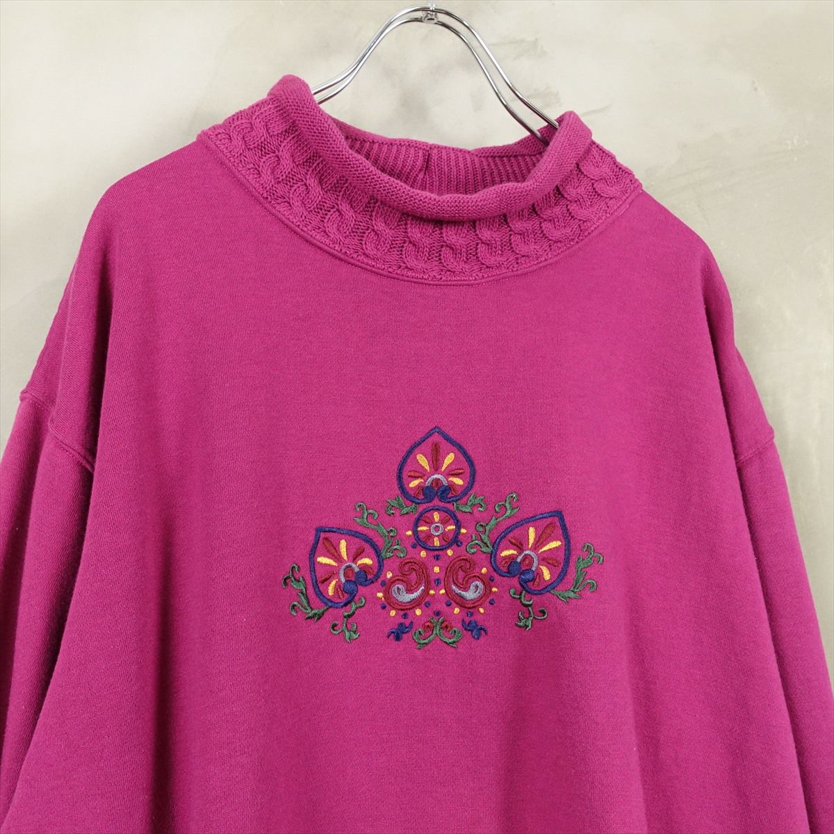 古着 ニットハイネック 刺繍デザイン スウェット