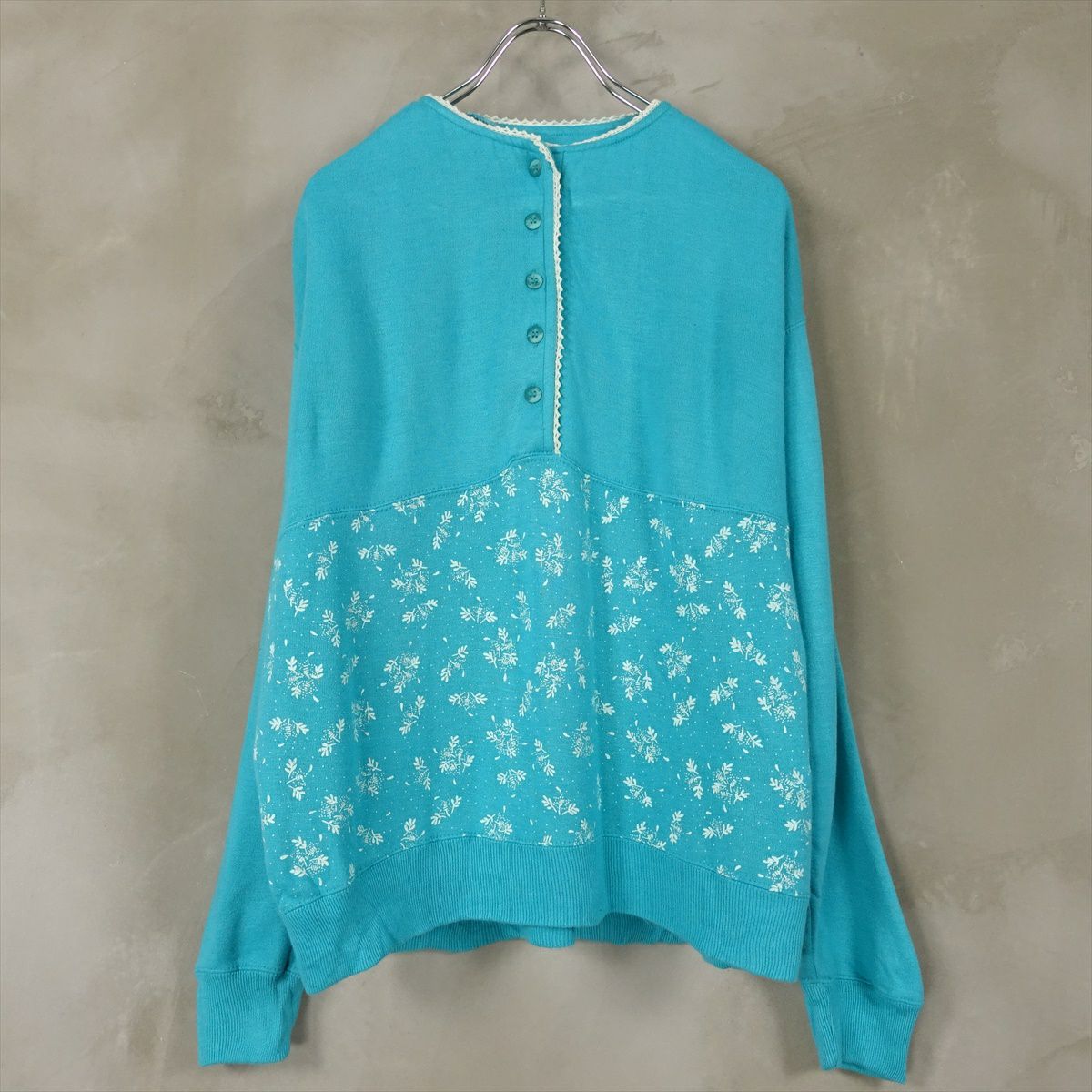 古着 ハーフボタン レース付き切り替えスウェット
