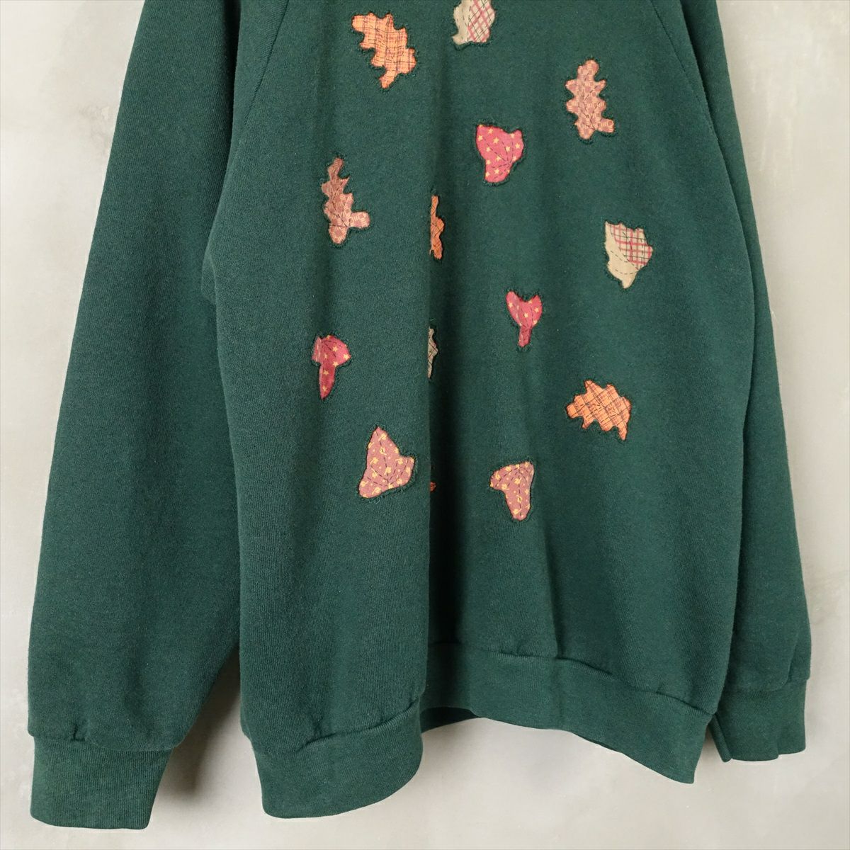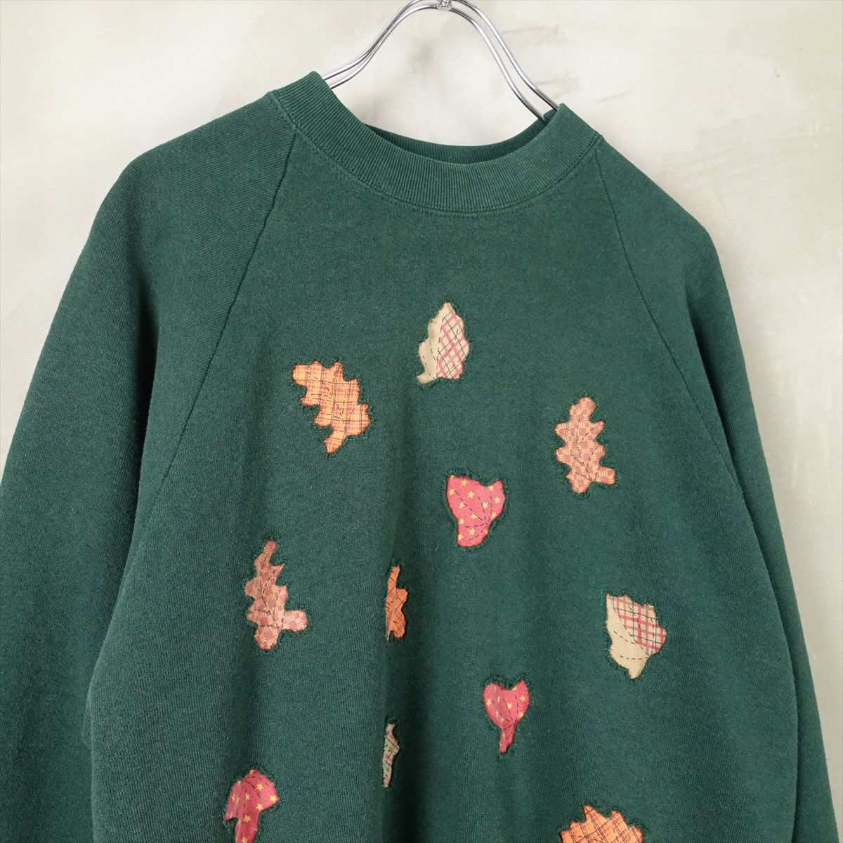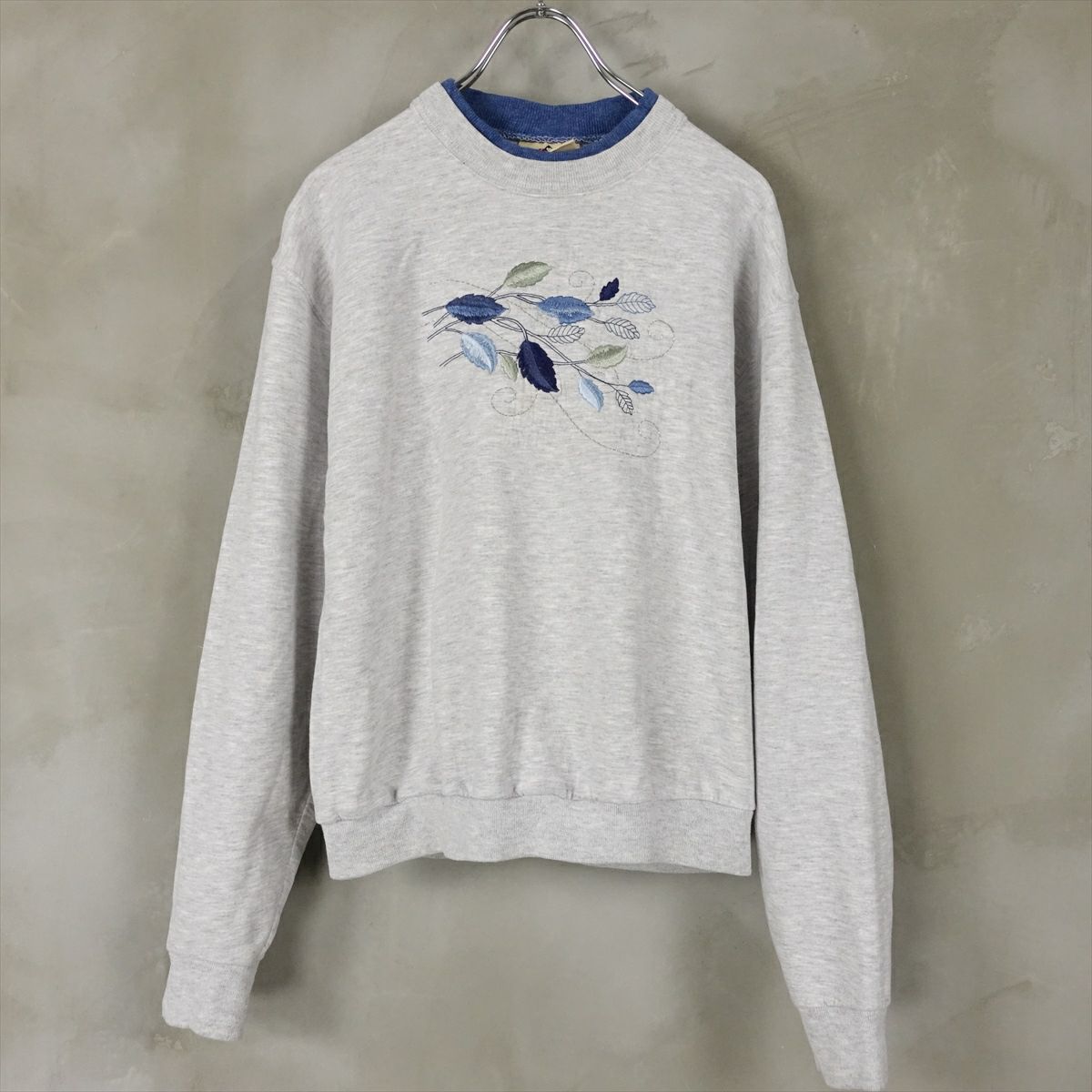 古着 2重襟 リーフ刺繍 スウェット