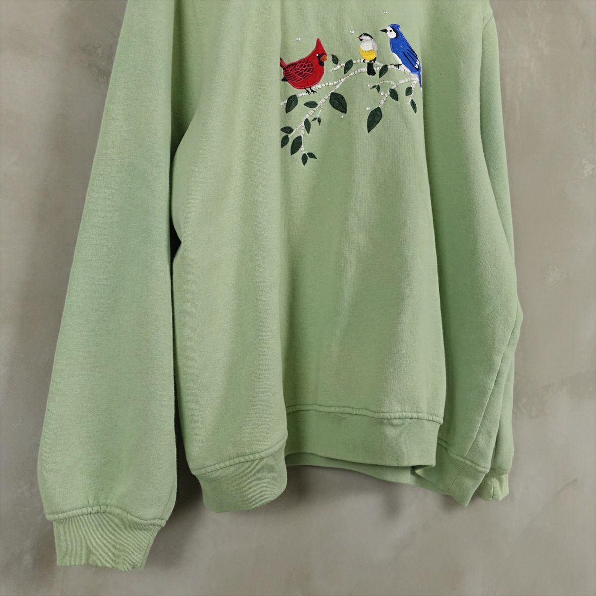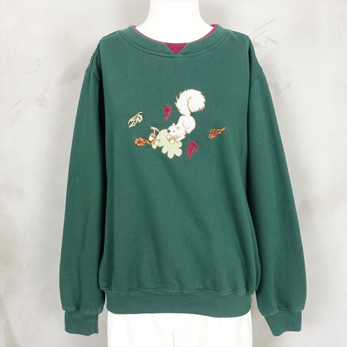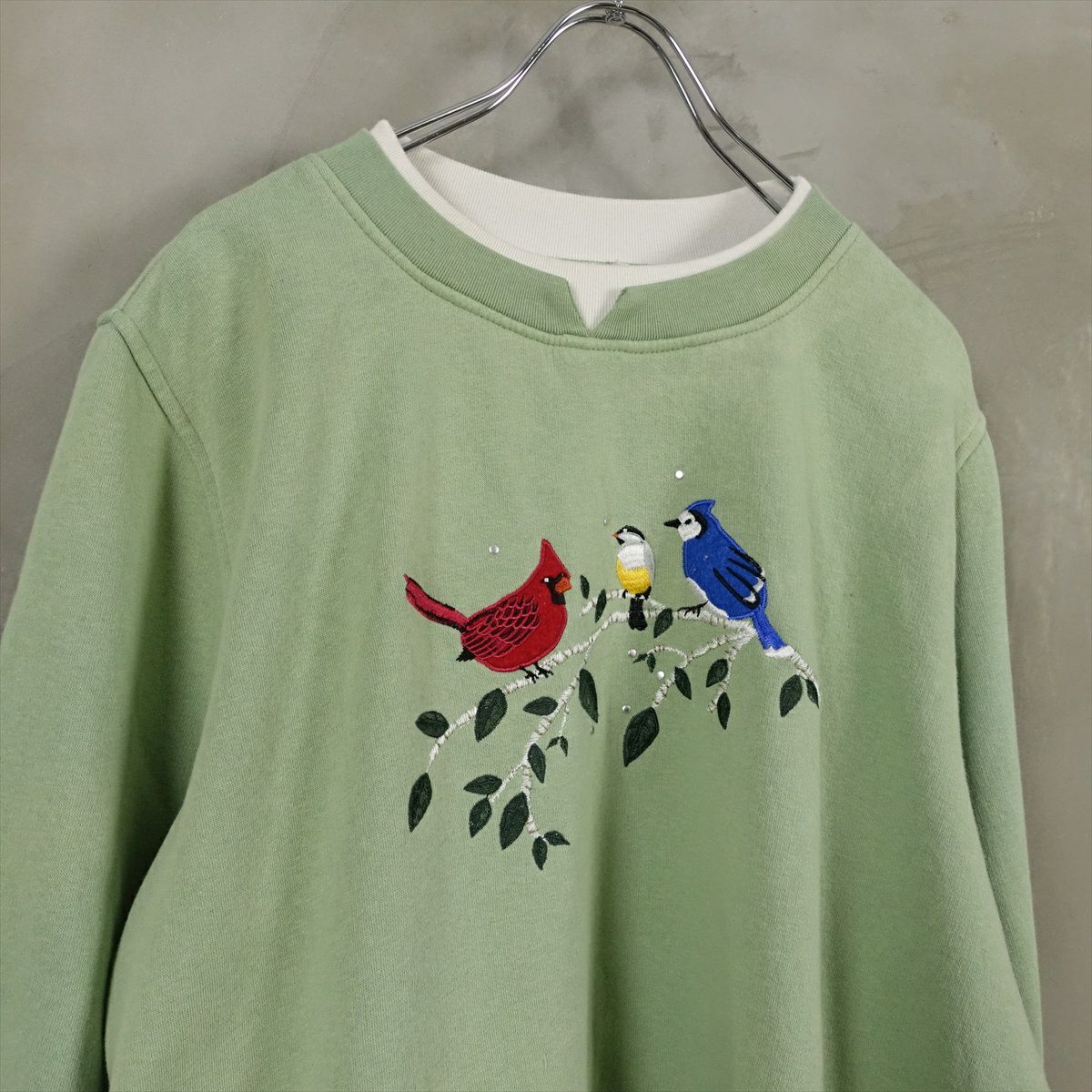 古着 2重襟 リーフ刺繍 スウェット