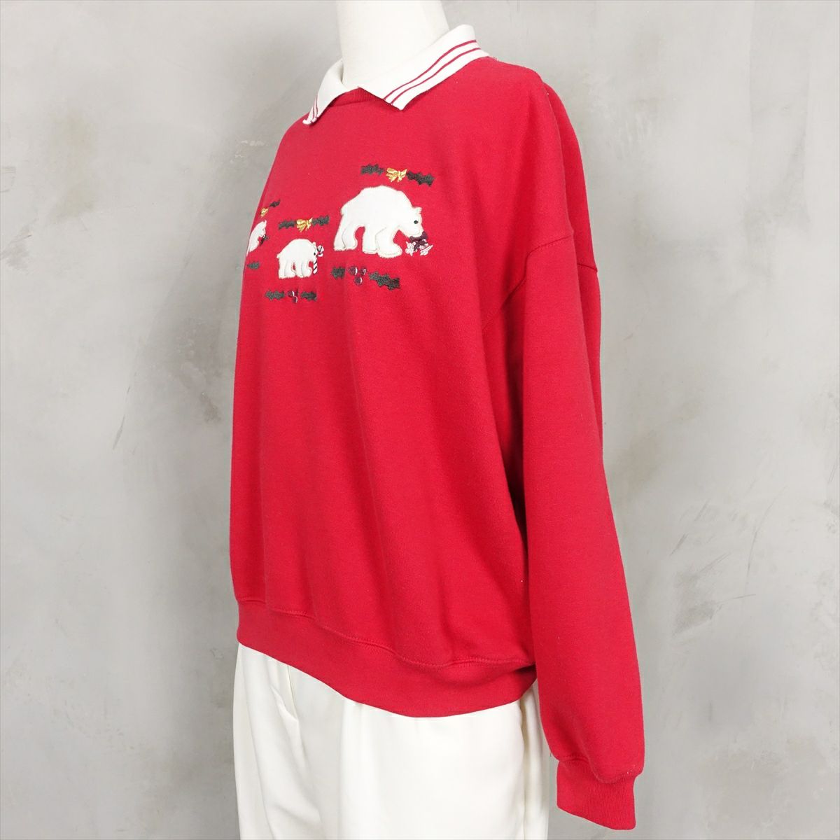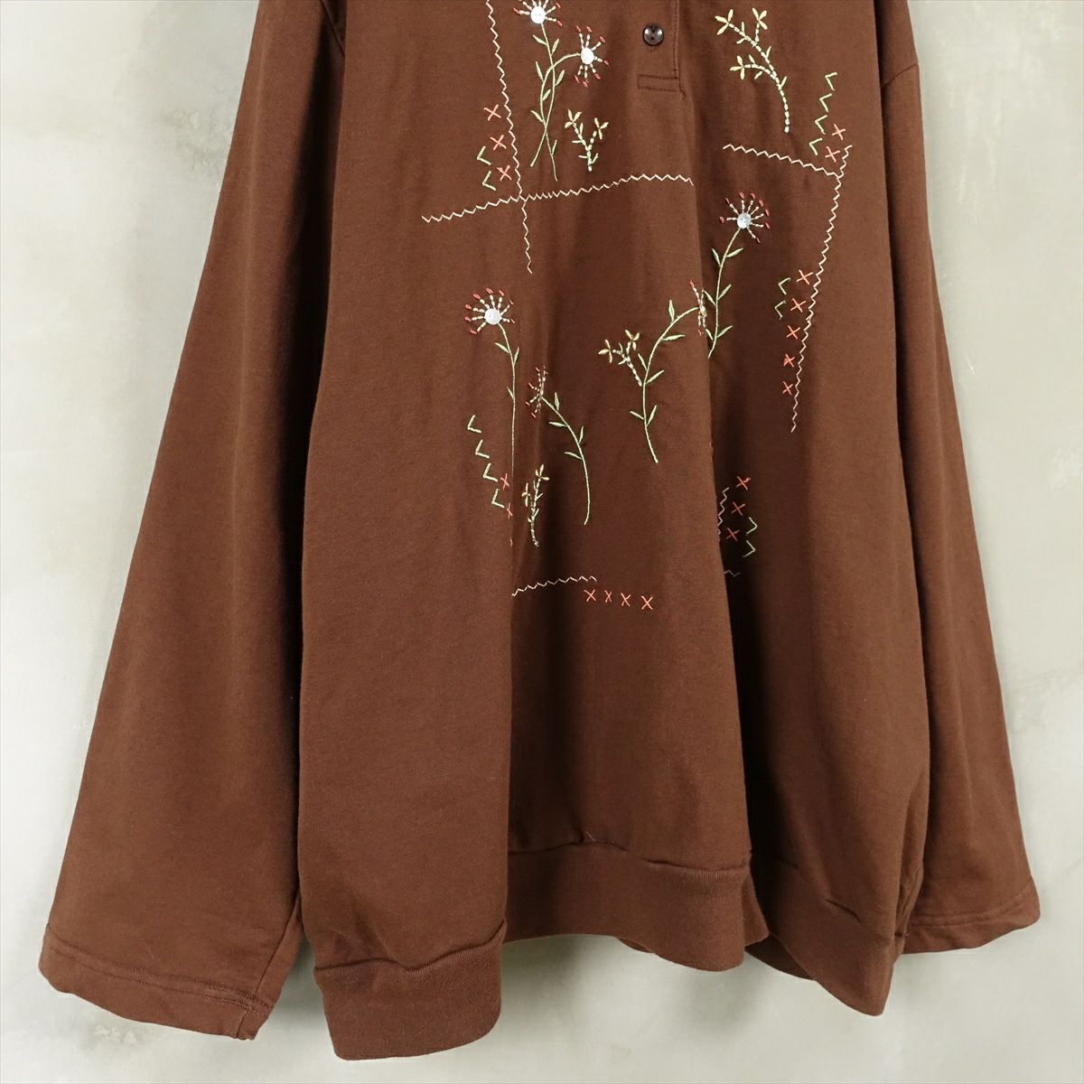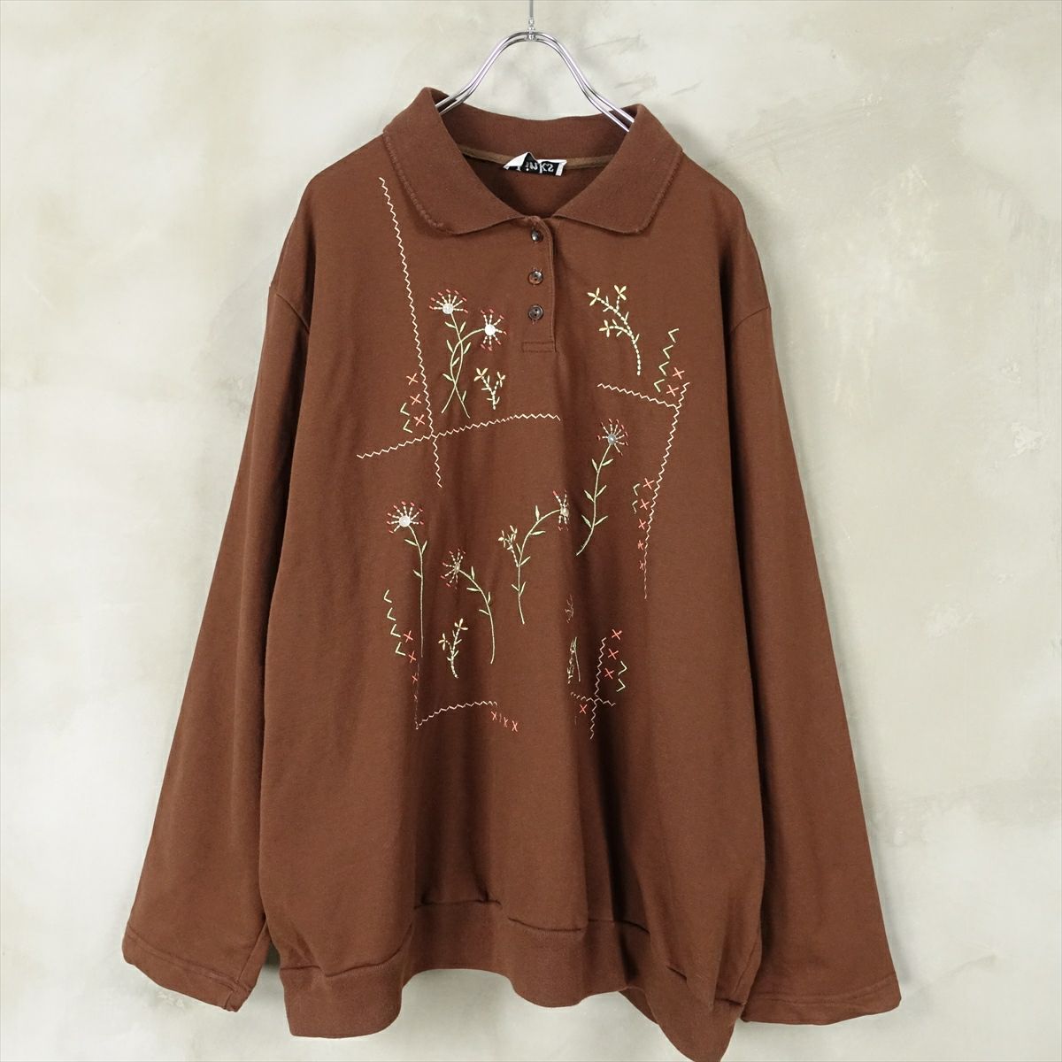 古着 襟付き リーフ刺繍 スウェット