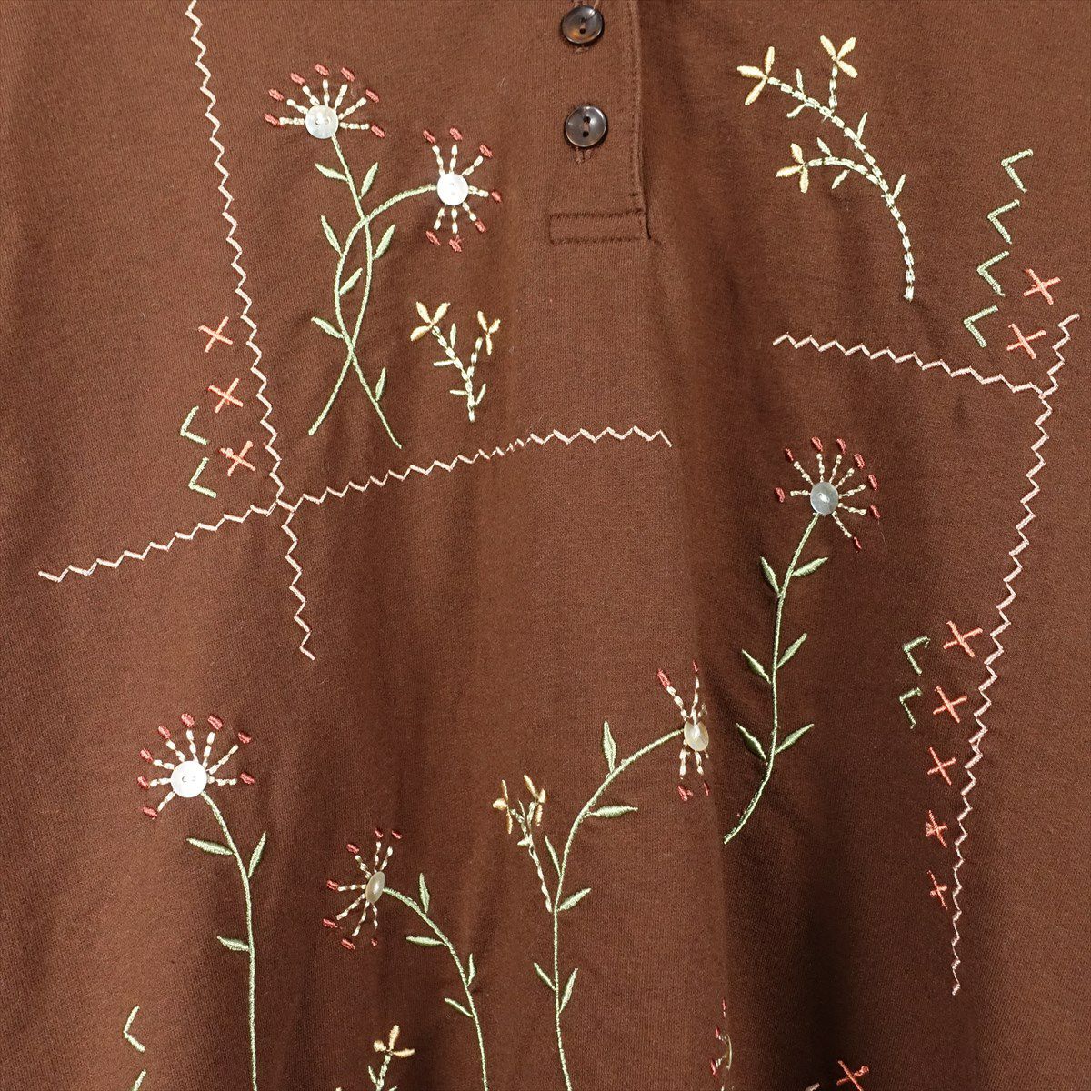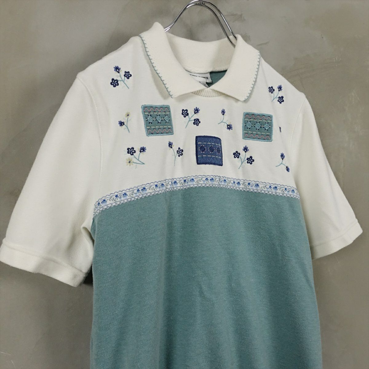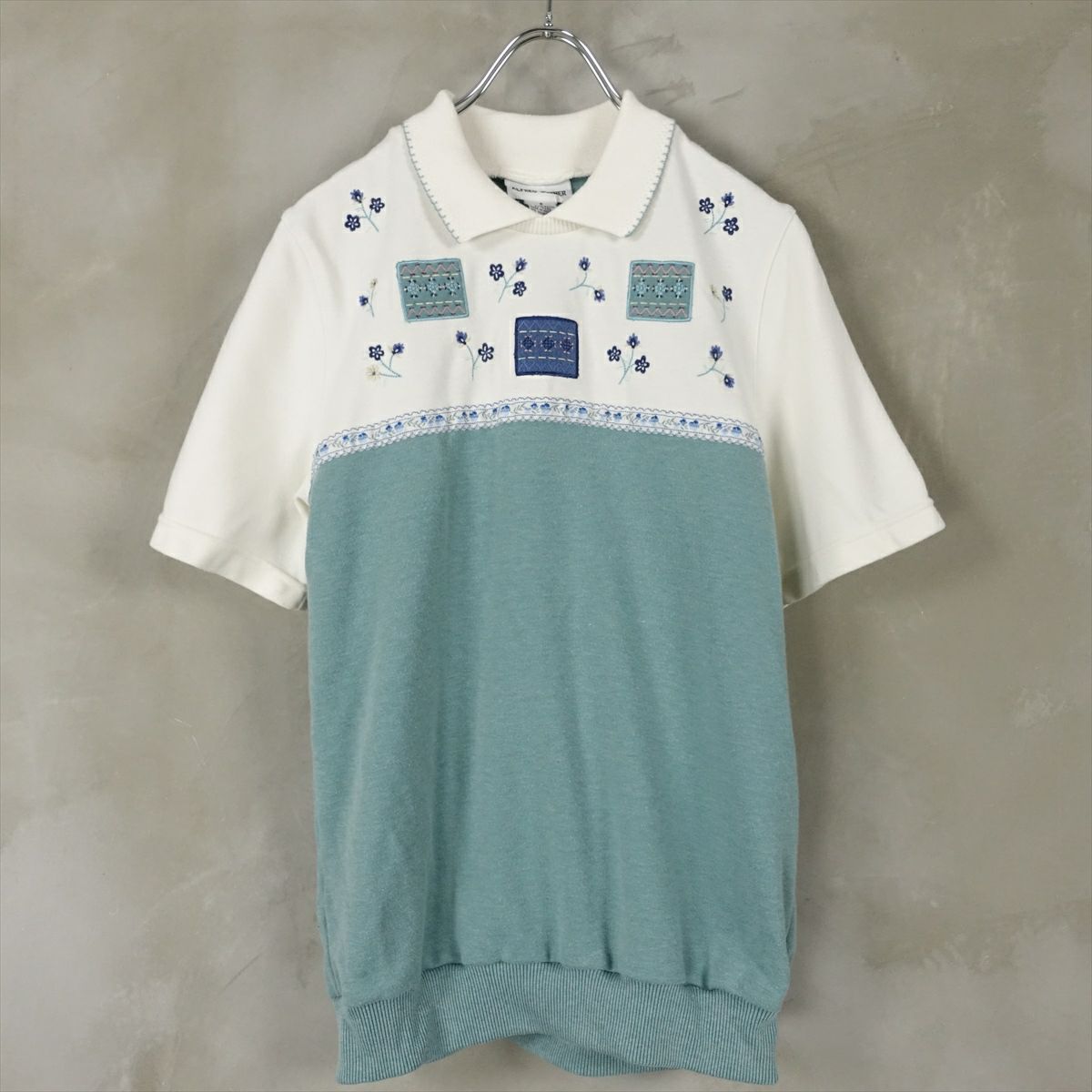 古着 襟付き フラワー刺繍 半袖スウェット