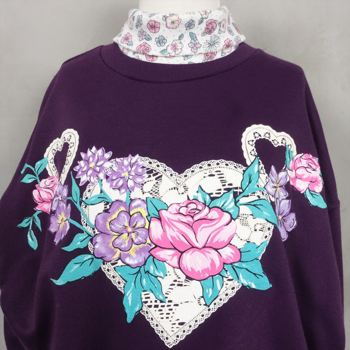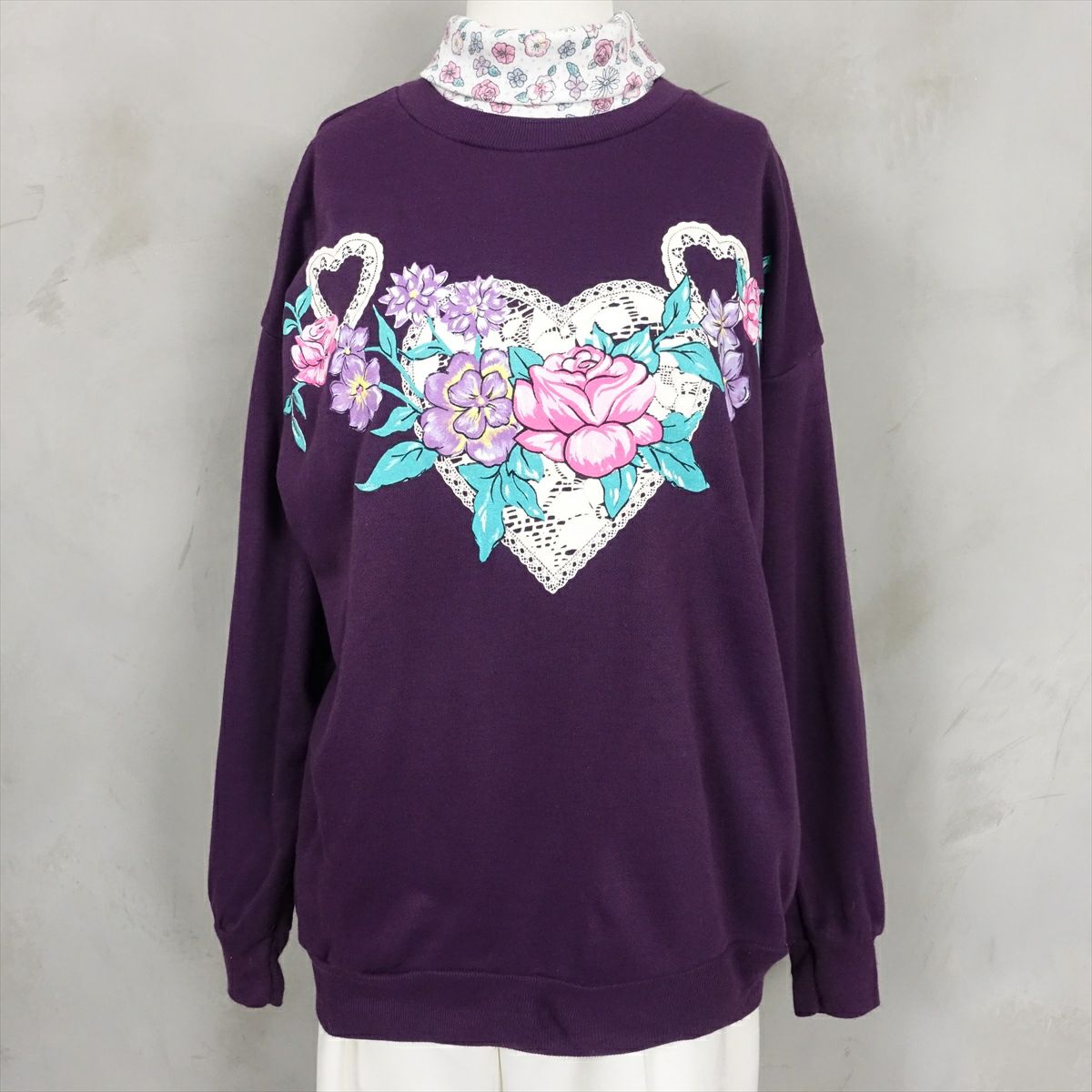 古着 2重襟 フラワープリント スウェット