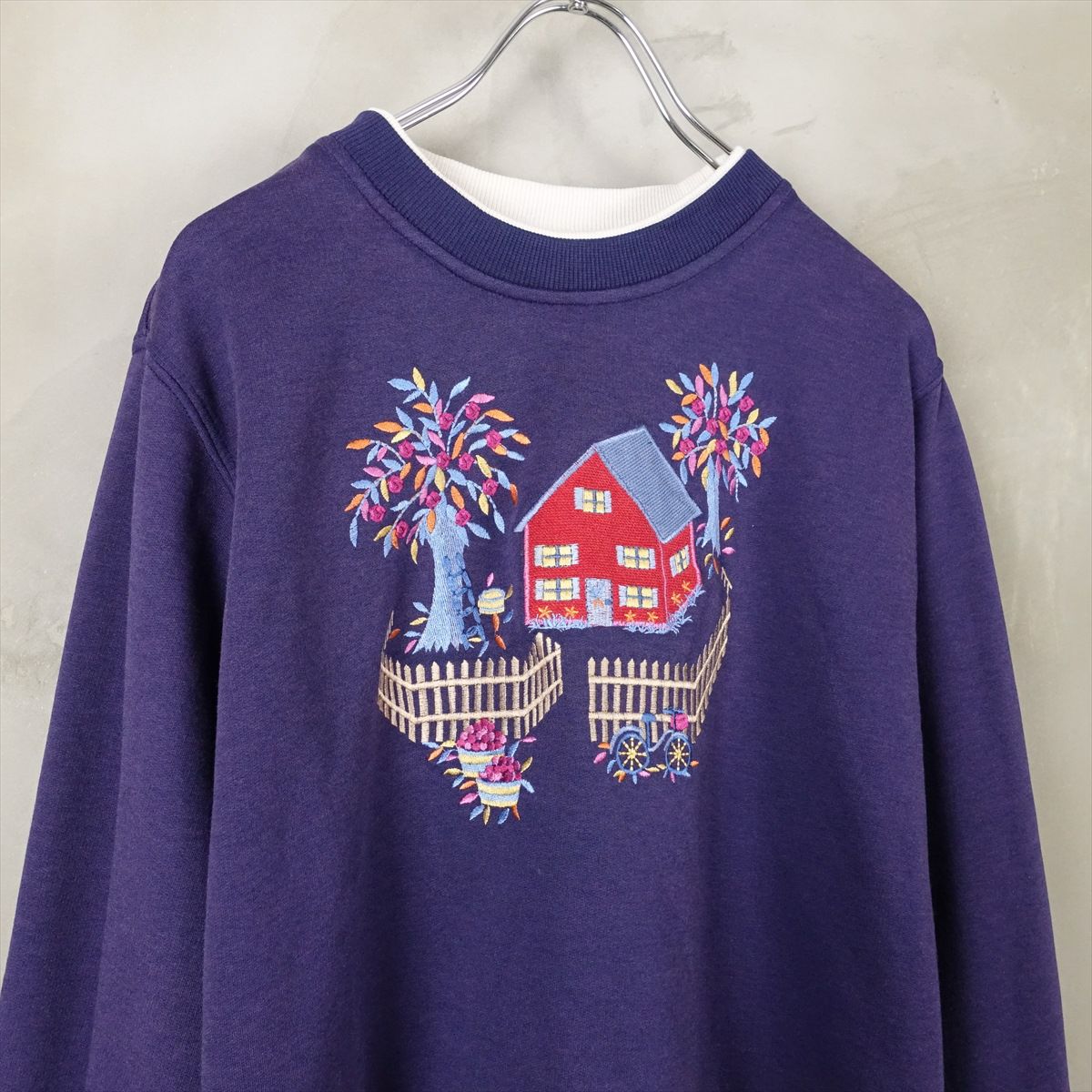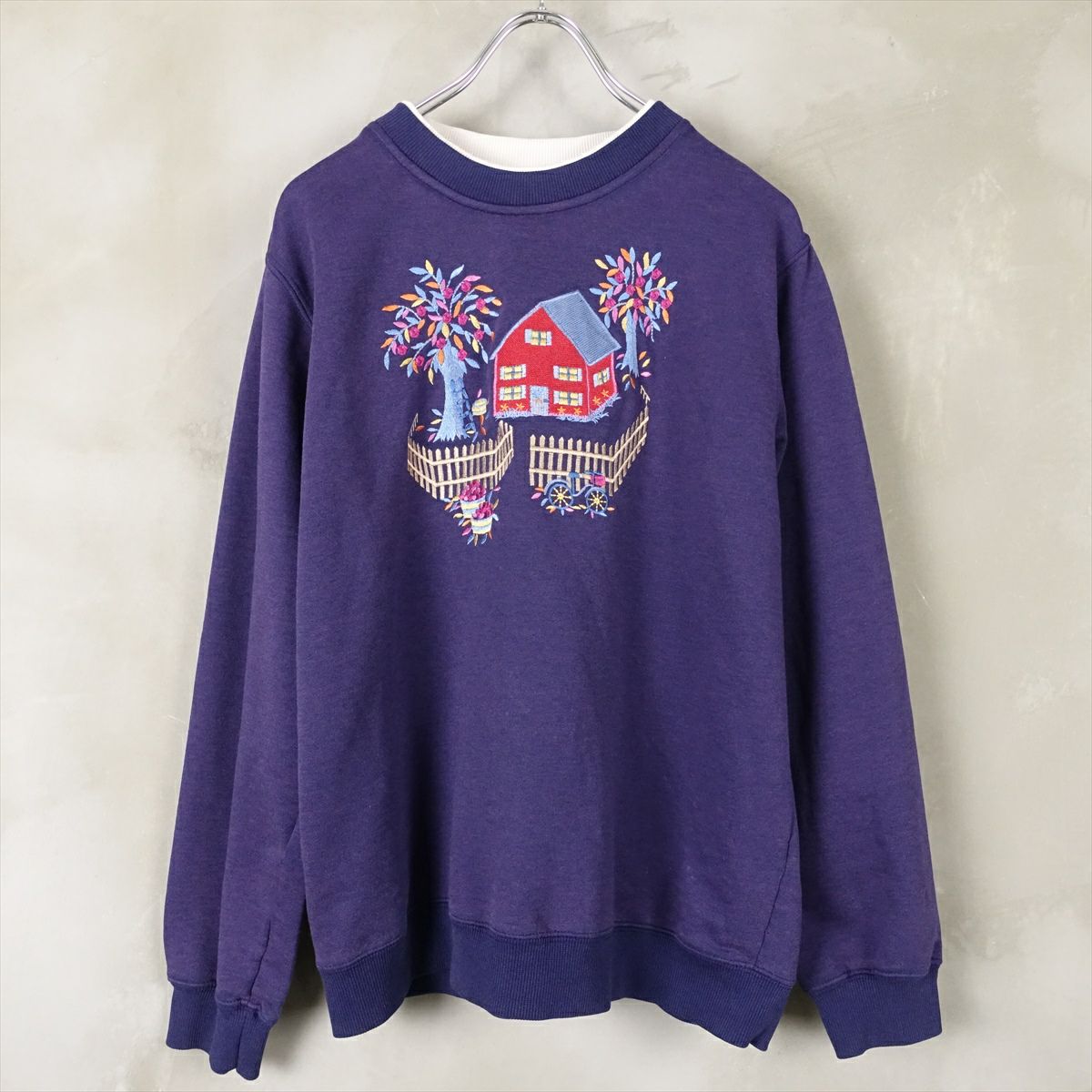 古着 2重襟 カントリー刺繍 スウェット