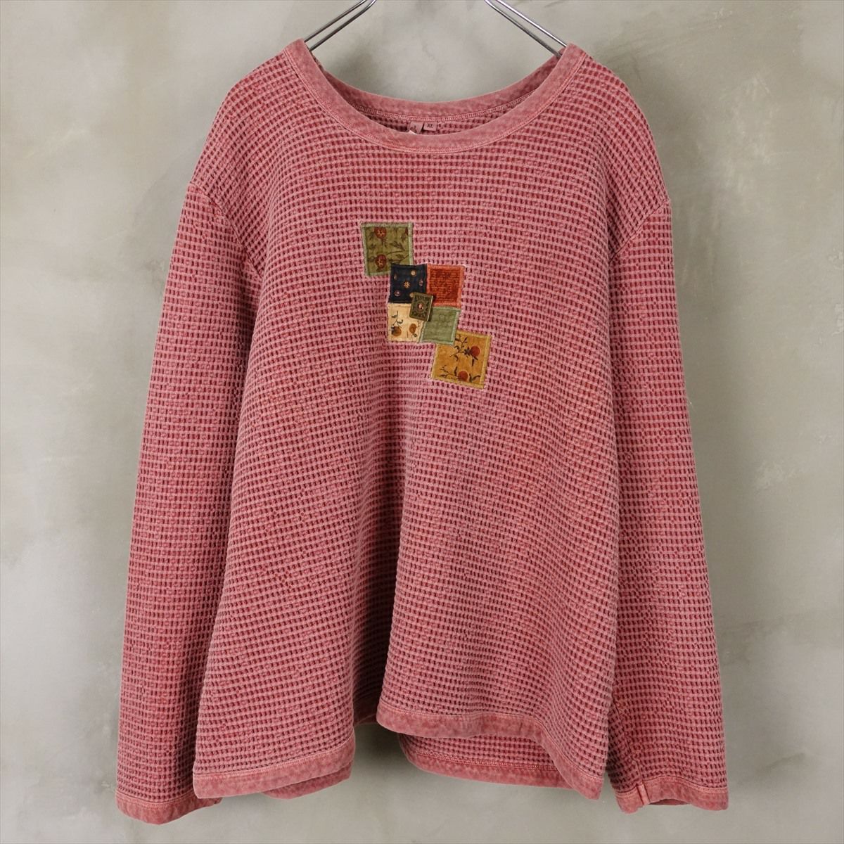古着 フラワーデザイン ワッフルスウェット