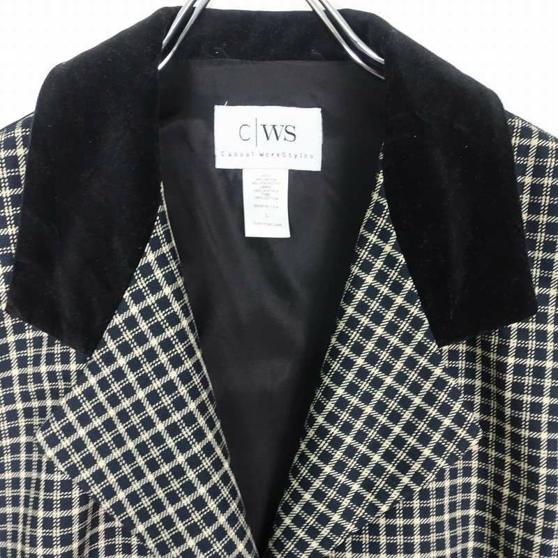 古着 CWS ベロア切替 チェックベスト