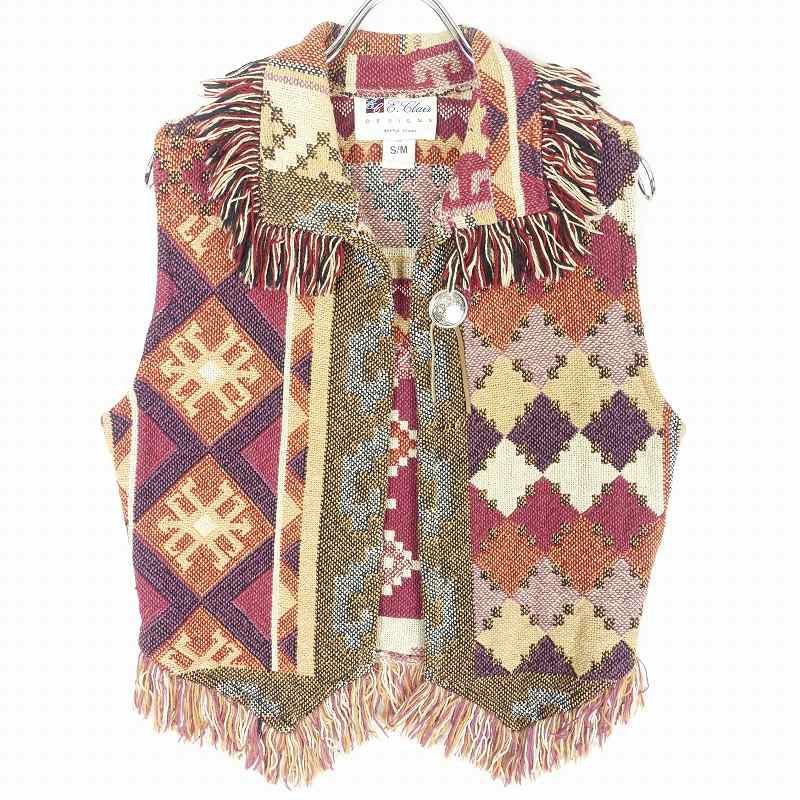 古着 ブランケット フリンジ ベスト