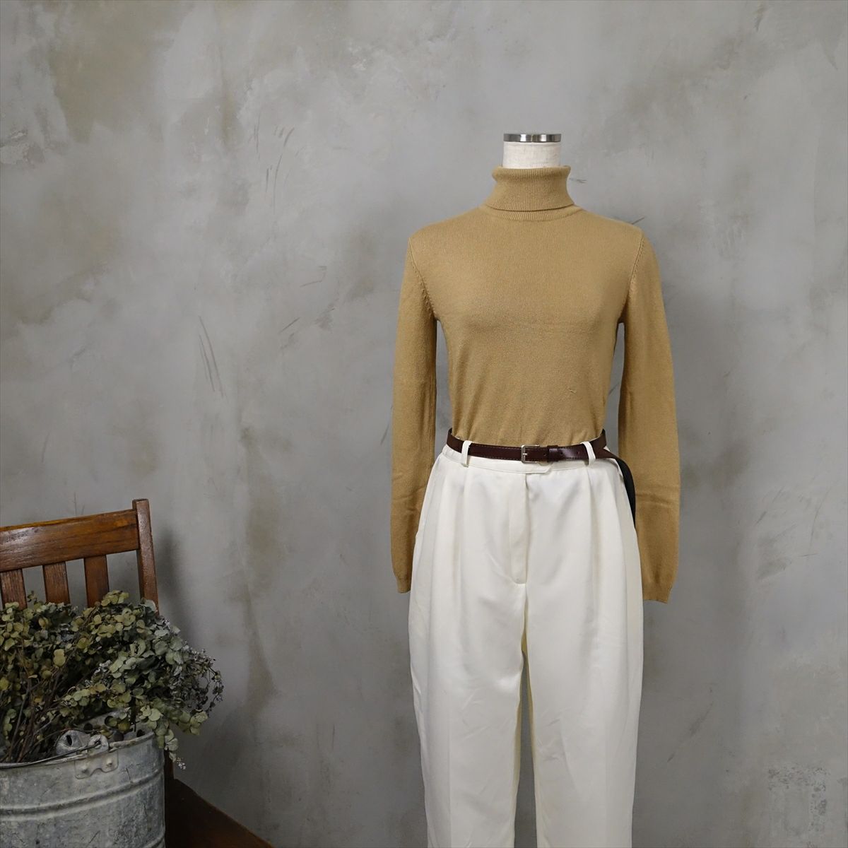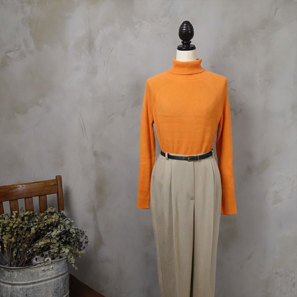 古着 モックネック型リブニット