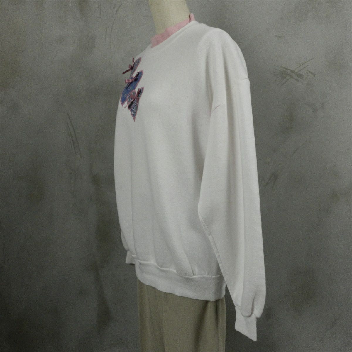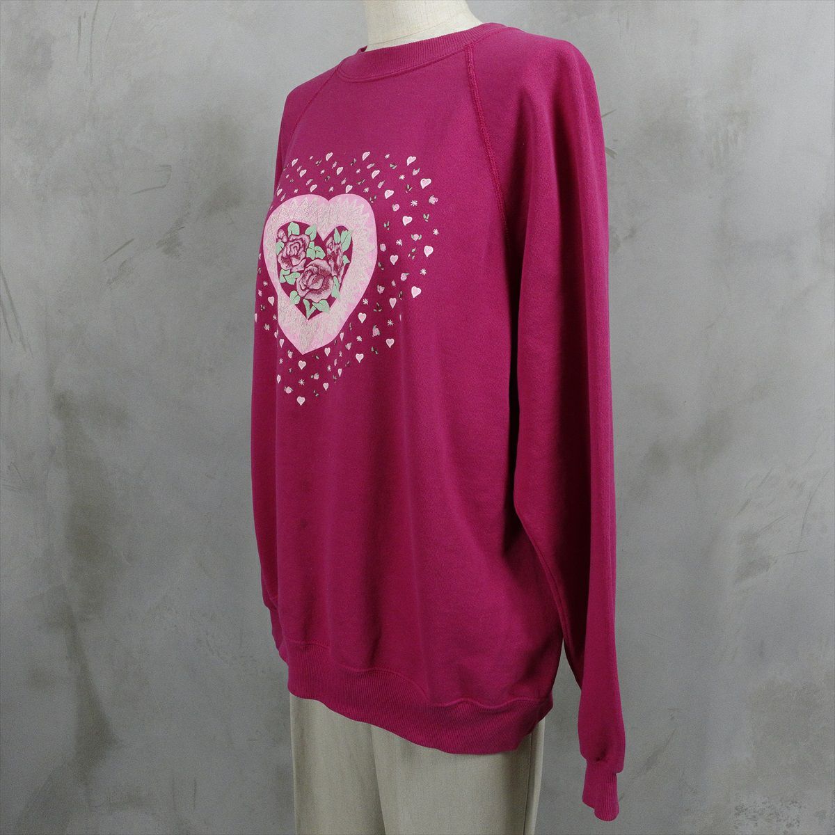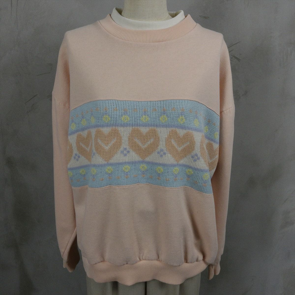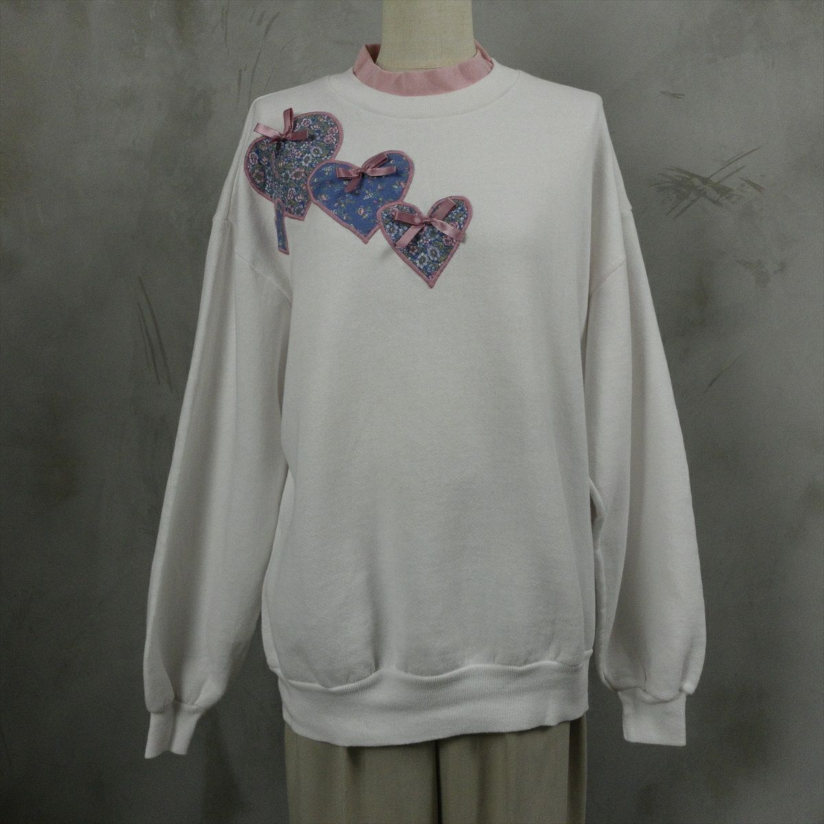 古着 2重襟 ハート柄 スウェット