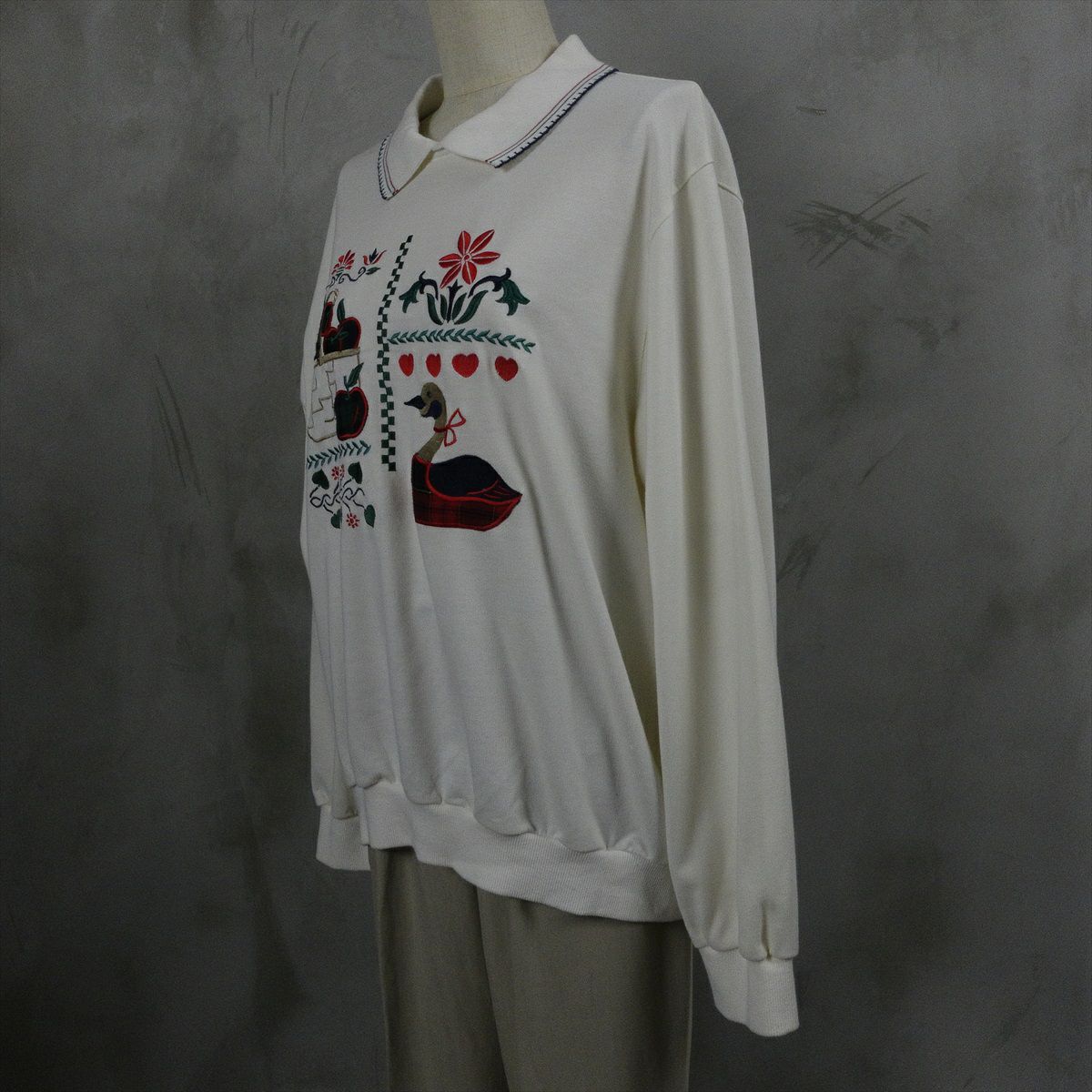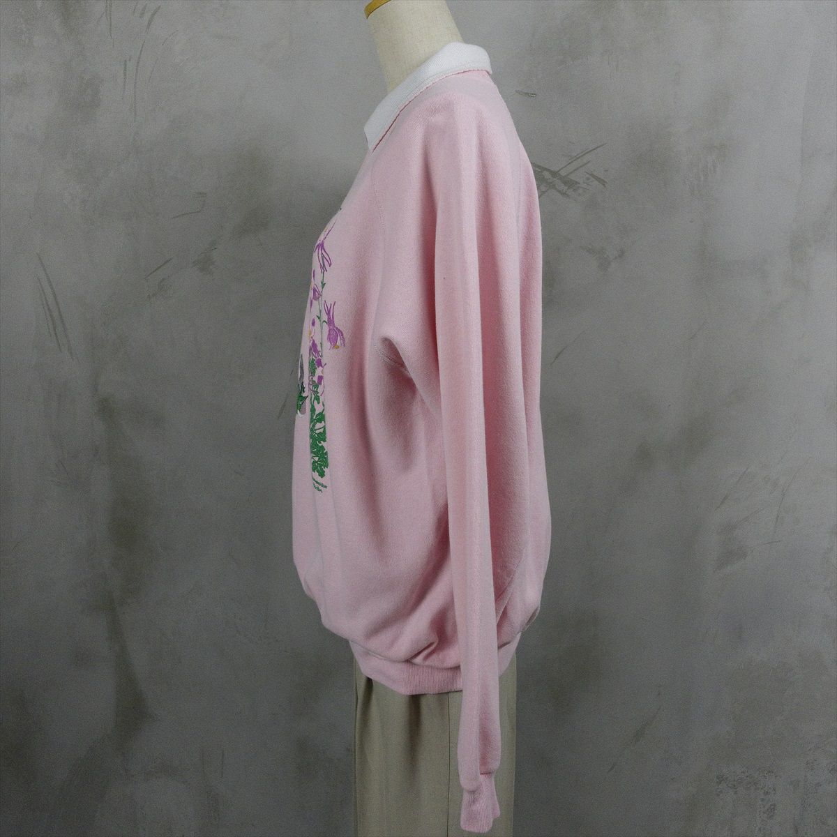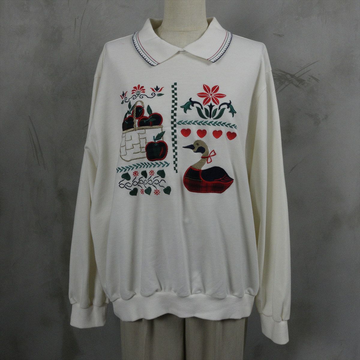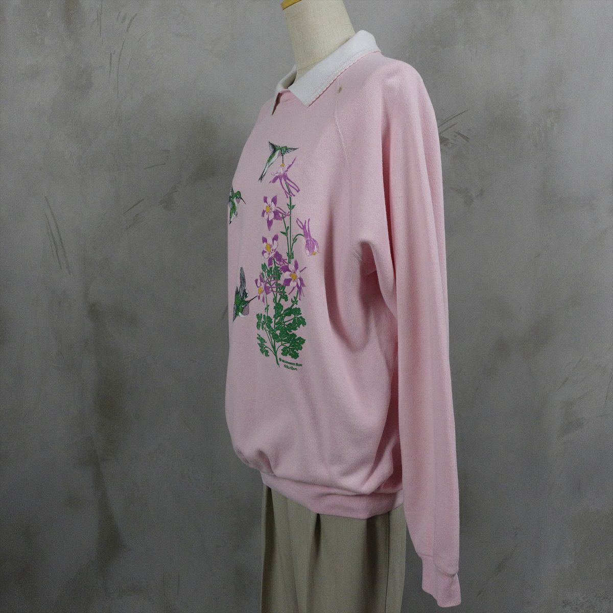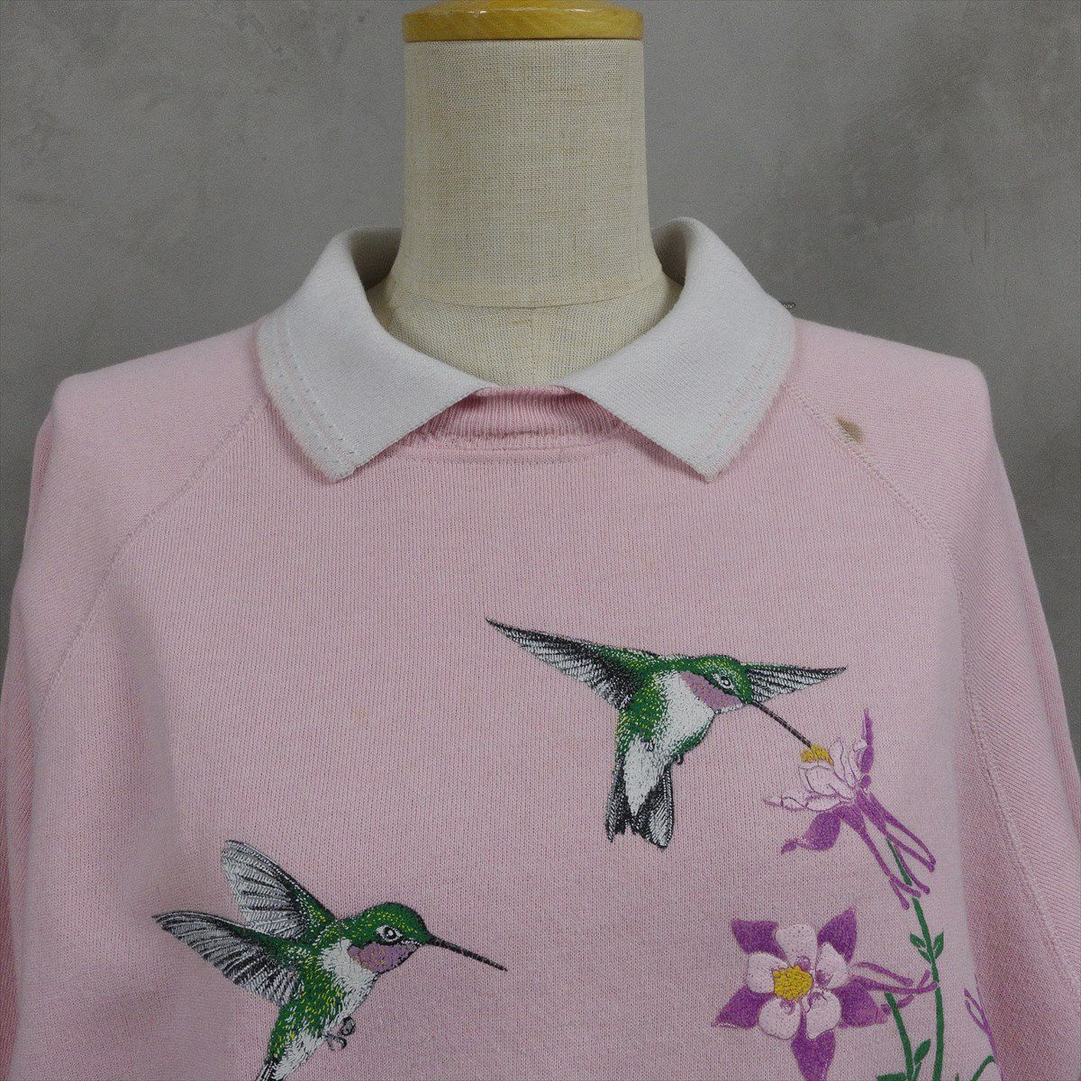 古着 襟付き 鳥モチーフ スウェット
