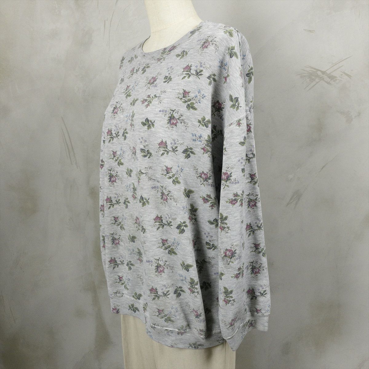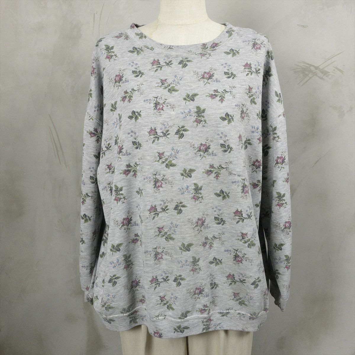 古着 花柄 霜降りグレー スウェット
