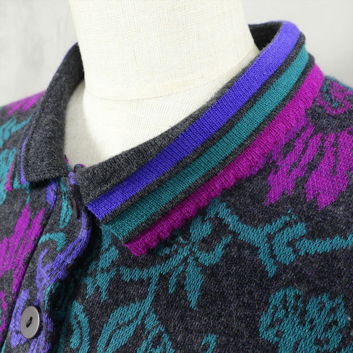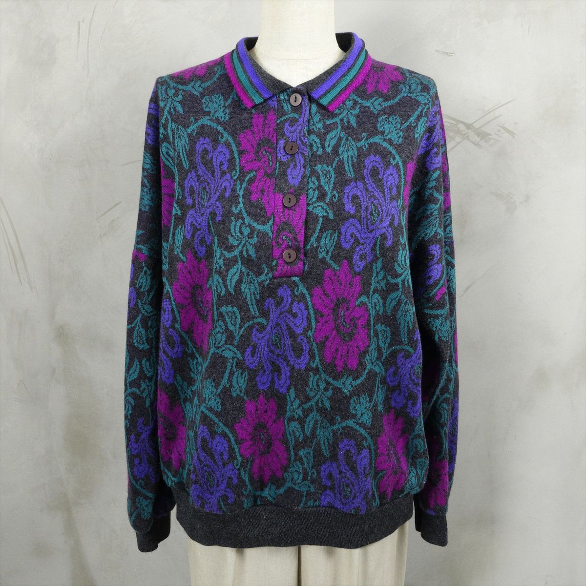 古着 襟付き 総柄 スウェット