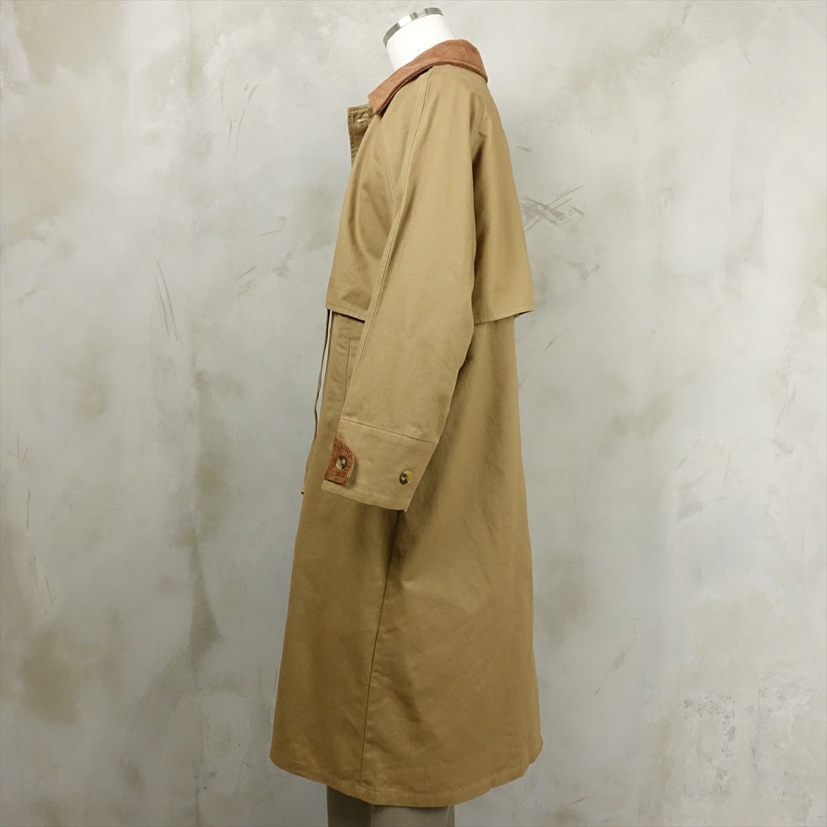 他の画像を見る Fafatt コーデュロイ切り替え トレンチコート 販売価格 ¥ 10,780 税込 在庫切れ 異素材組み合わせのトレンチコートです。襟と折り返した袖にコーデュロイ素材を使用しており、アクセントになっています。また通常のトレンチコートと異なり、ガンフラップが両サイドに施されているのも特徴的です。ウエストにはドローコードが使用されています。ウエストを絞ることでまた違った印象を楽しむ事ができます。ブラウンカラーで使い勝手が良く、遊びもきく、1枚あると幅広いコーディネートをお楽しみいただけるアイテムです。 詳細を見る お気に入りに登録する