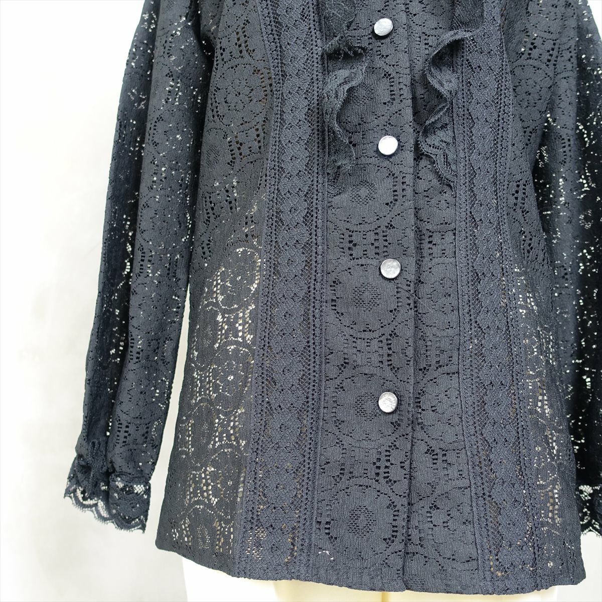 古着 レース フリル 長袖ブラウス