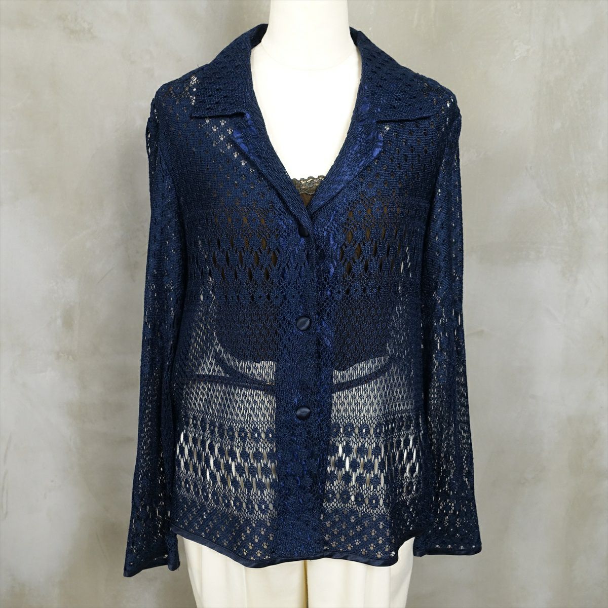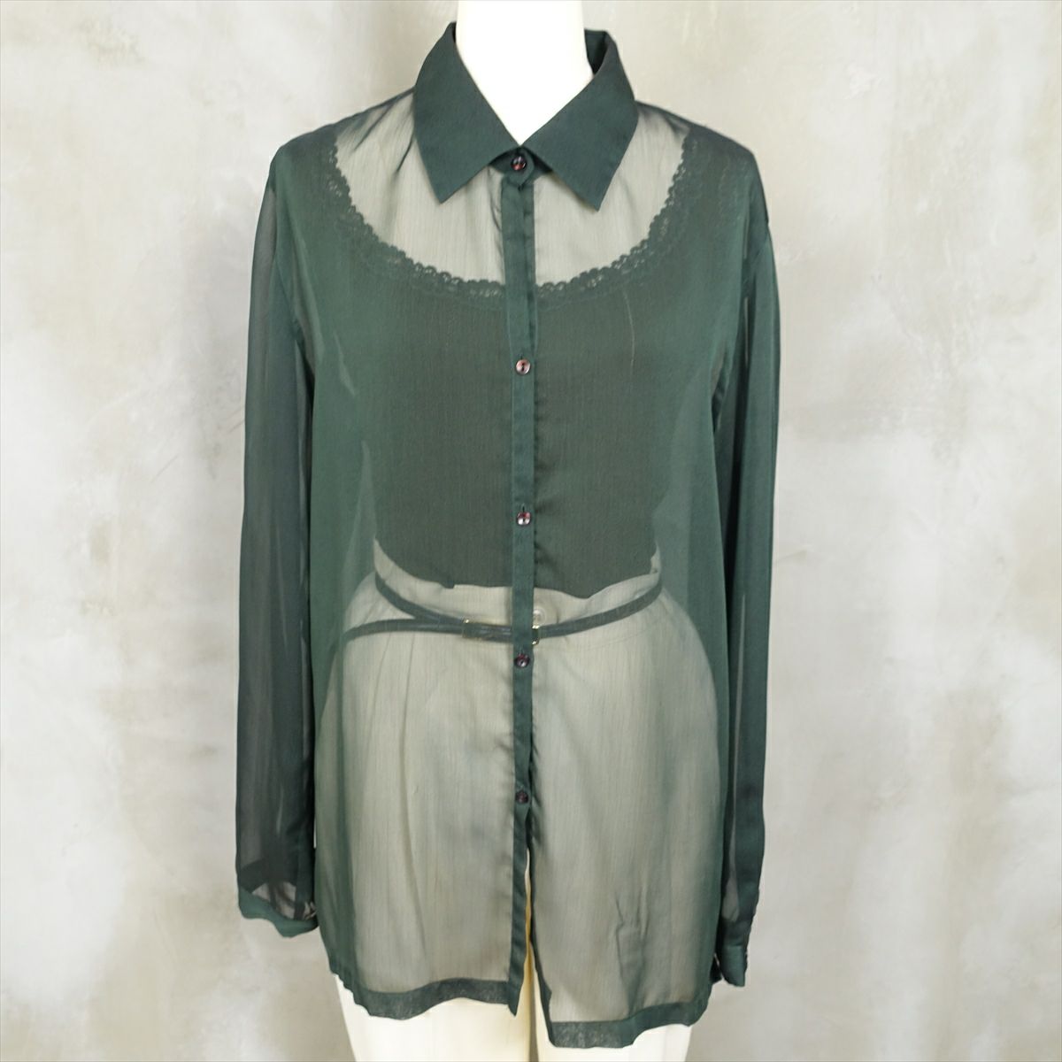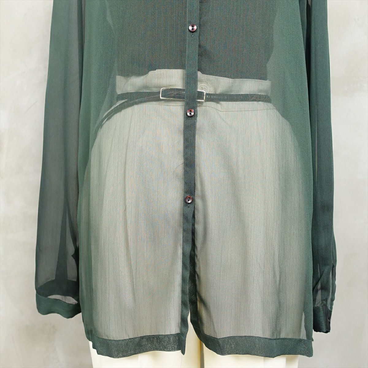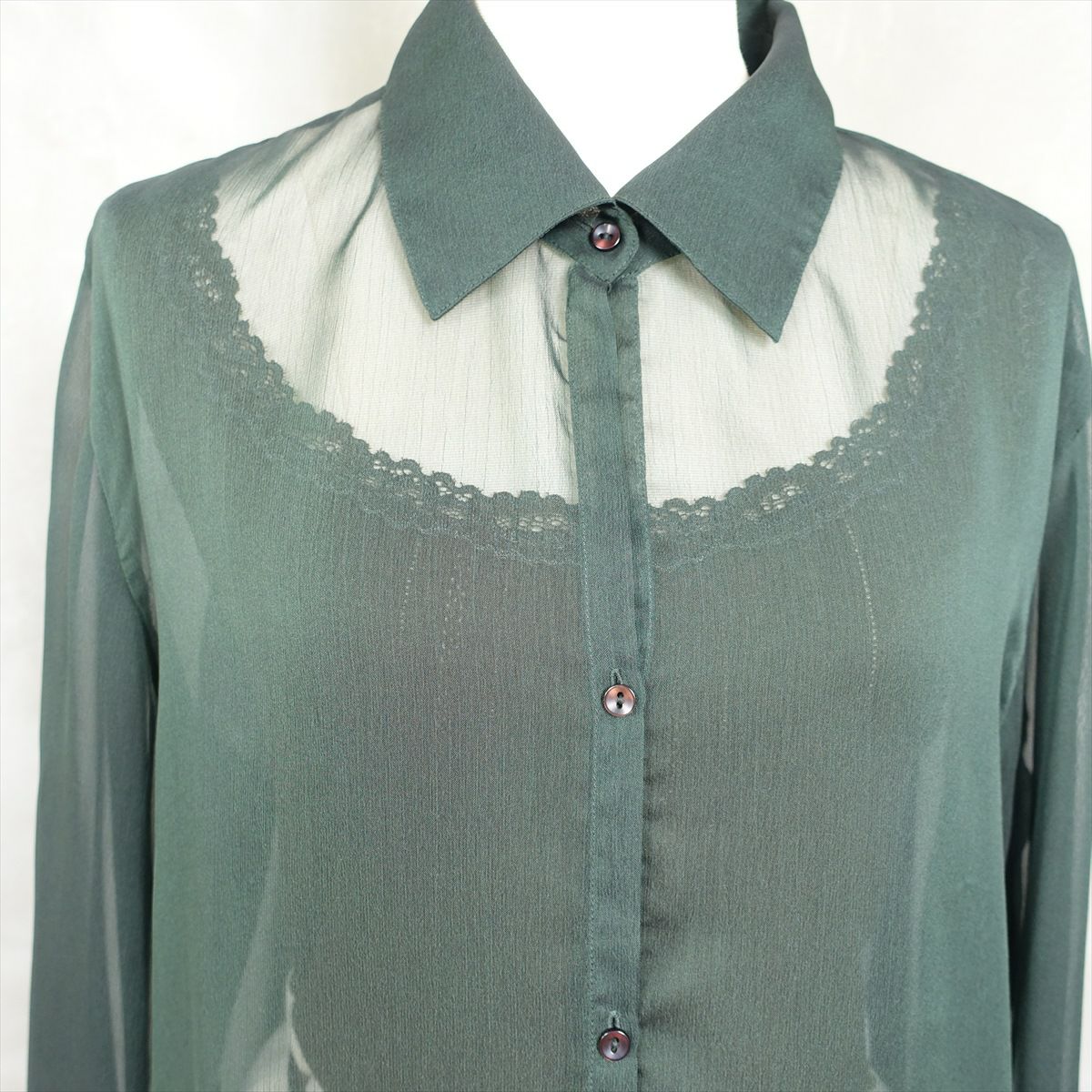 古着 開襟 シースルー 長袖ブラウス