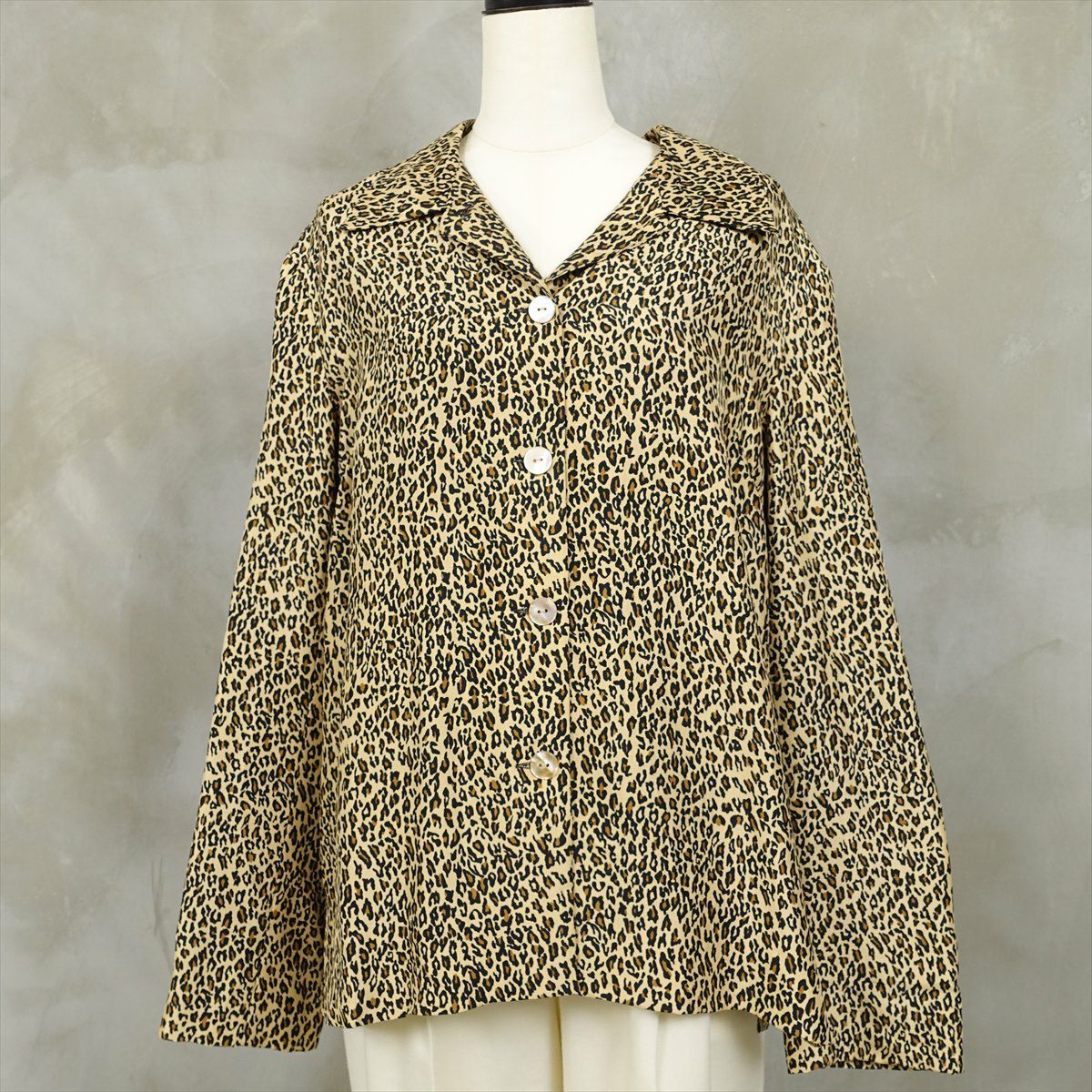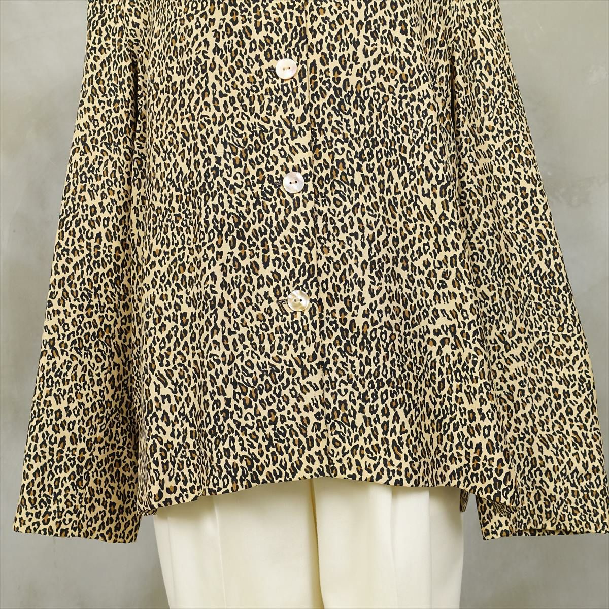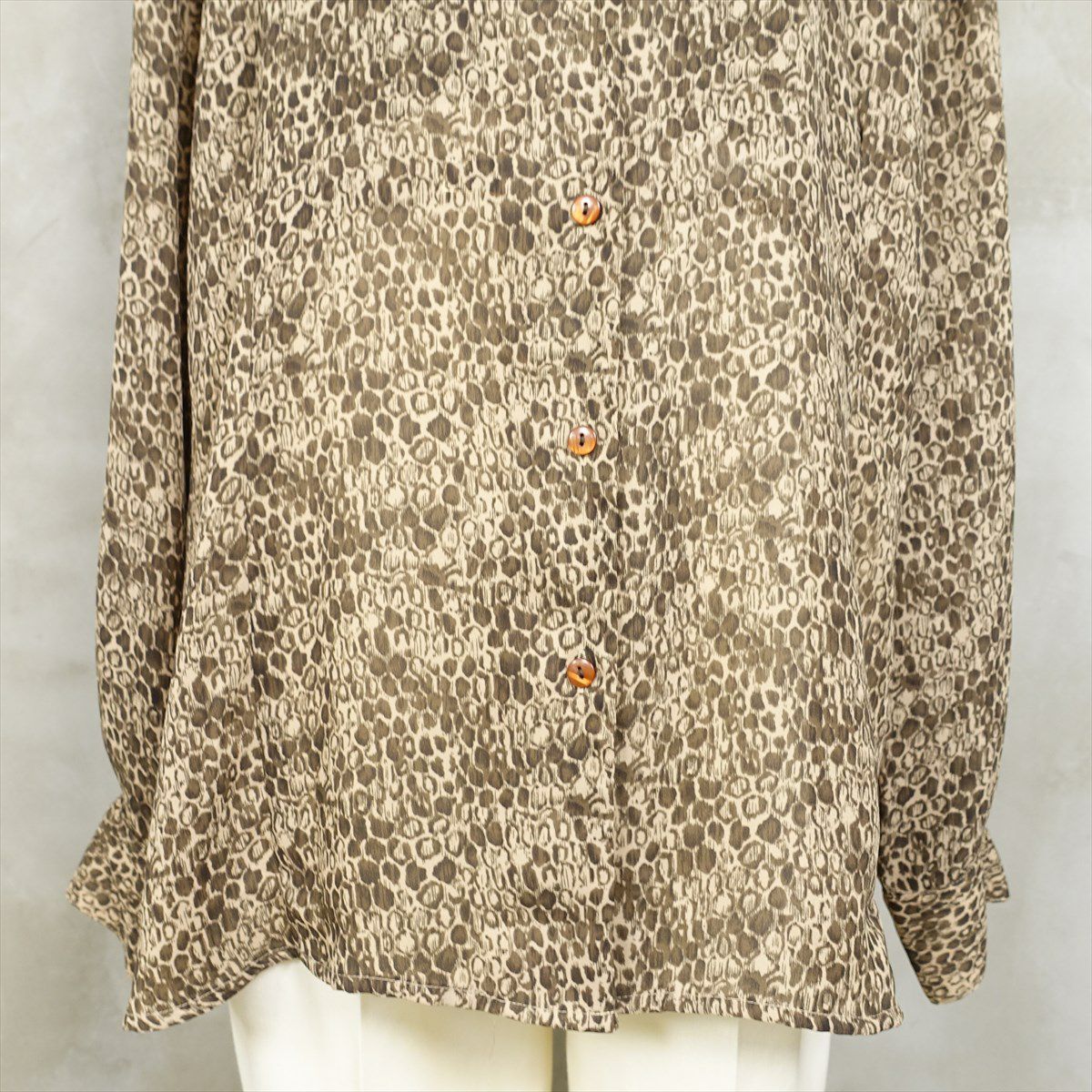 古着 レオパード柄 シェルボタン 長袖シャツ